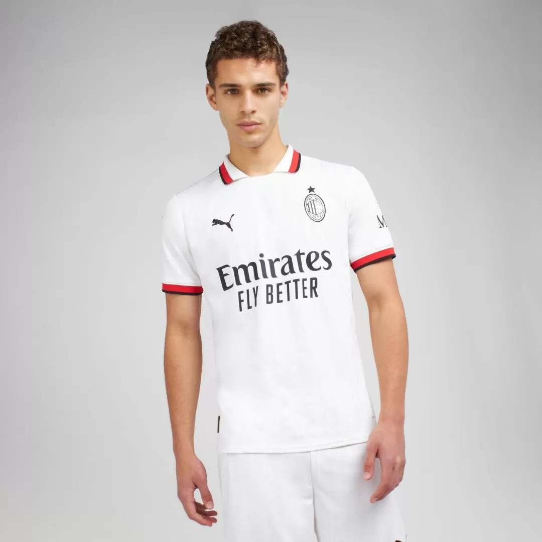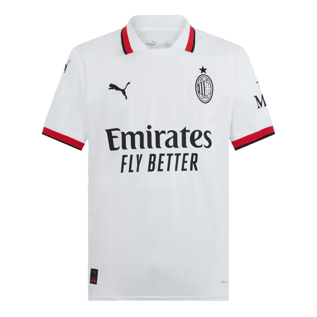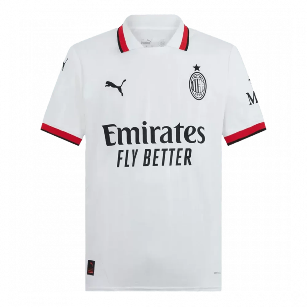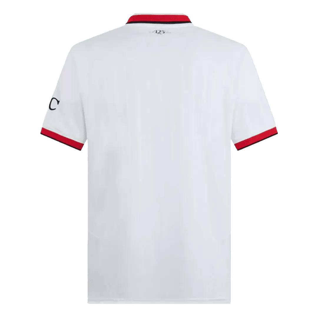 Step away from the ordinary with the AC Milan Away Soccer Jersey, a sleek tribute to one of football’s most legendary clubs. Featuring a crisp white base accented by bold red and black trim, this jersey reflects the Rossoneri’s rich history and unwavering spirit on the road. The minimalist design carries the iconic club crest and sponsor branding in classic black, evoking both tradition and modernity for fans and players alike.