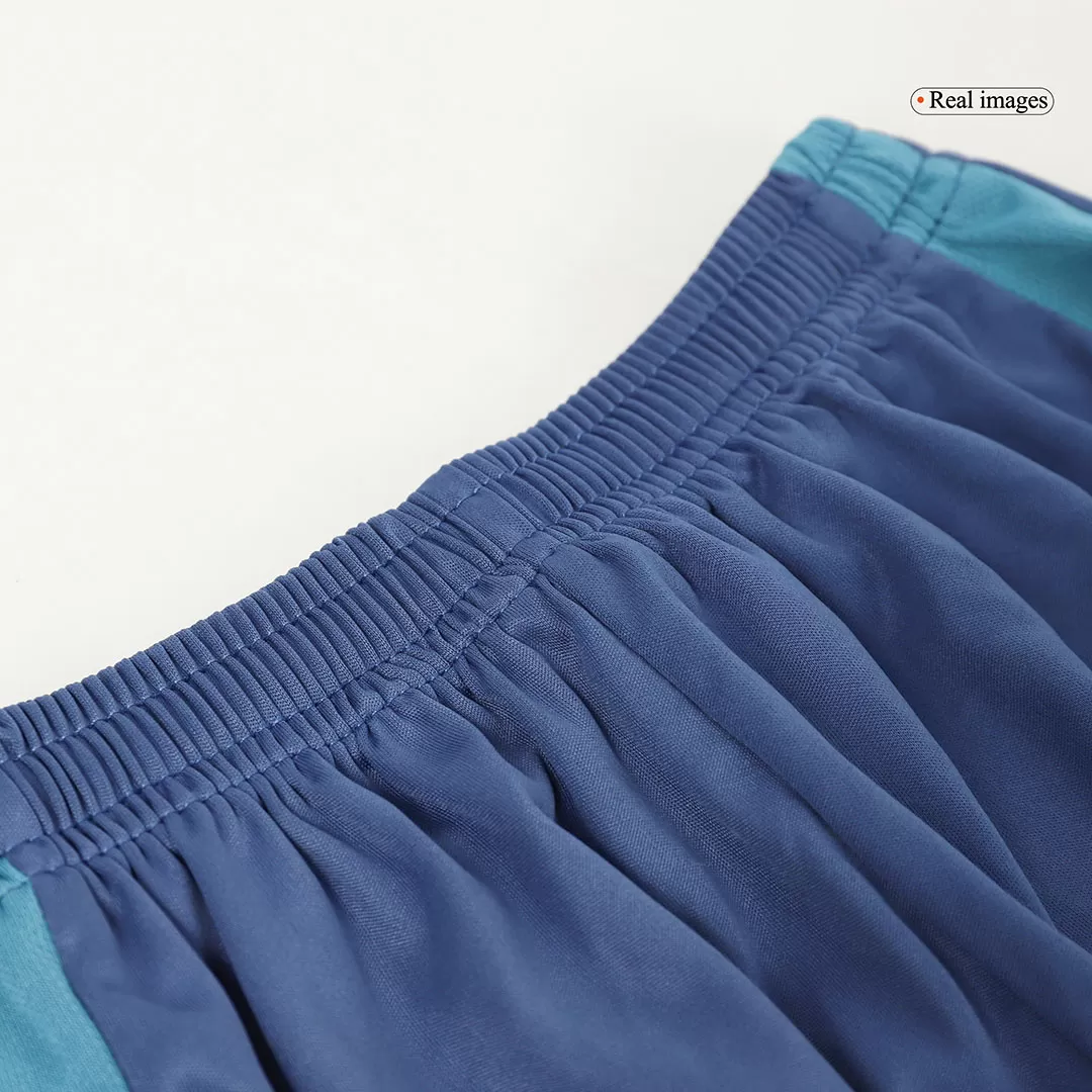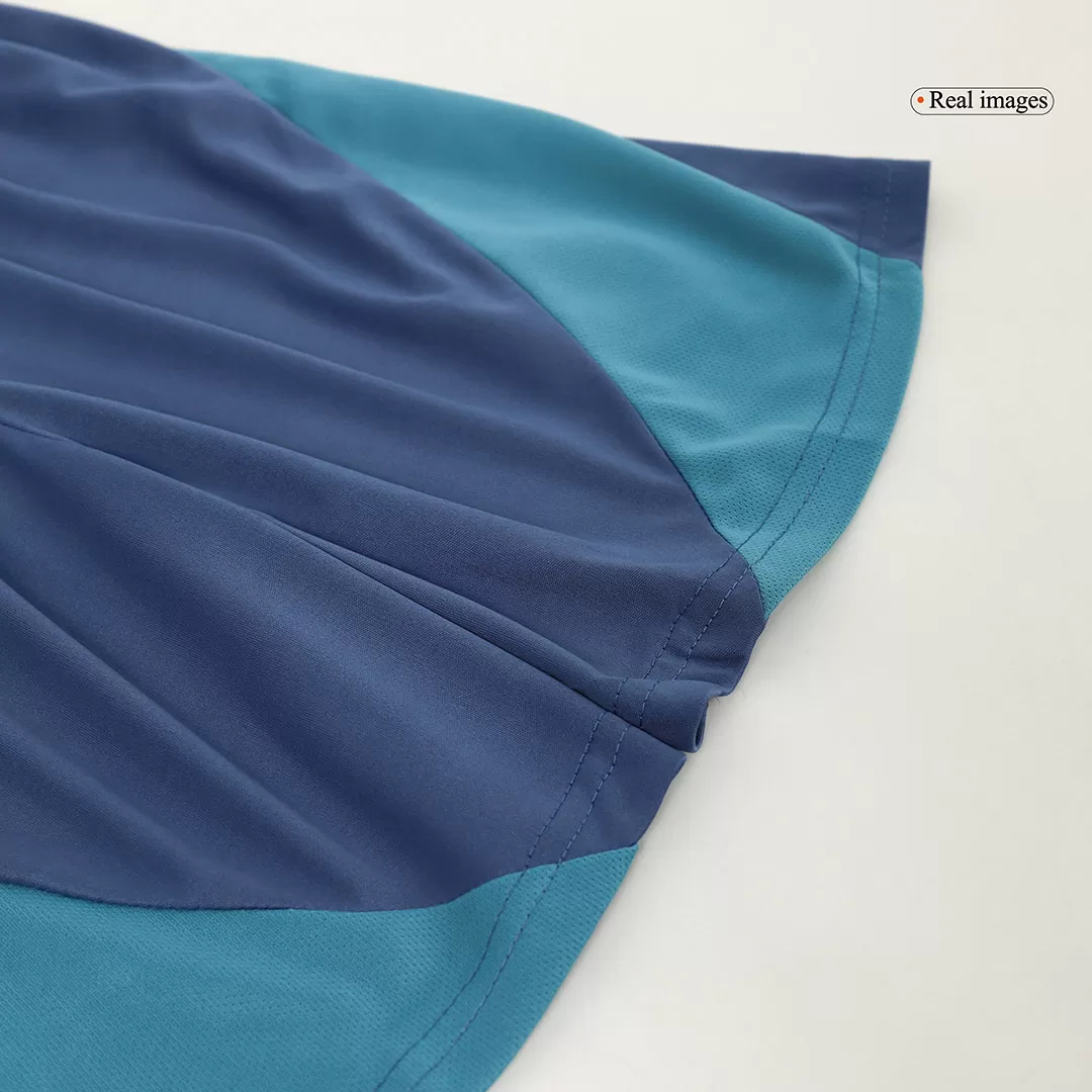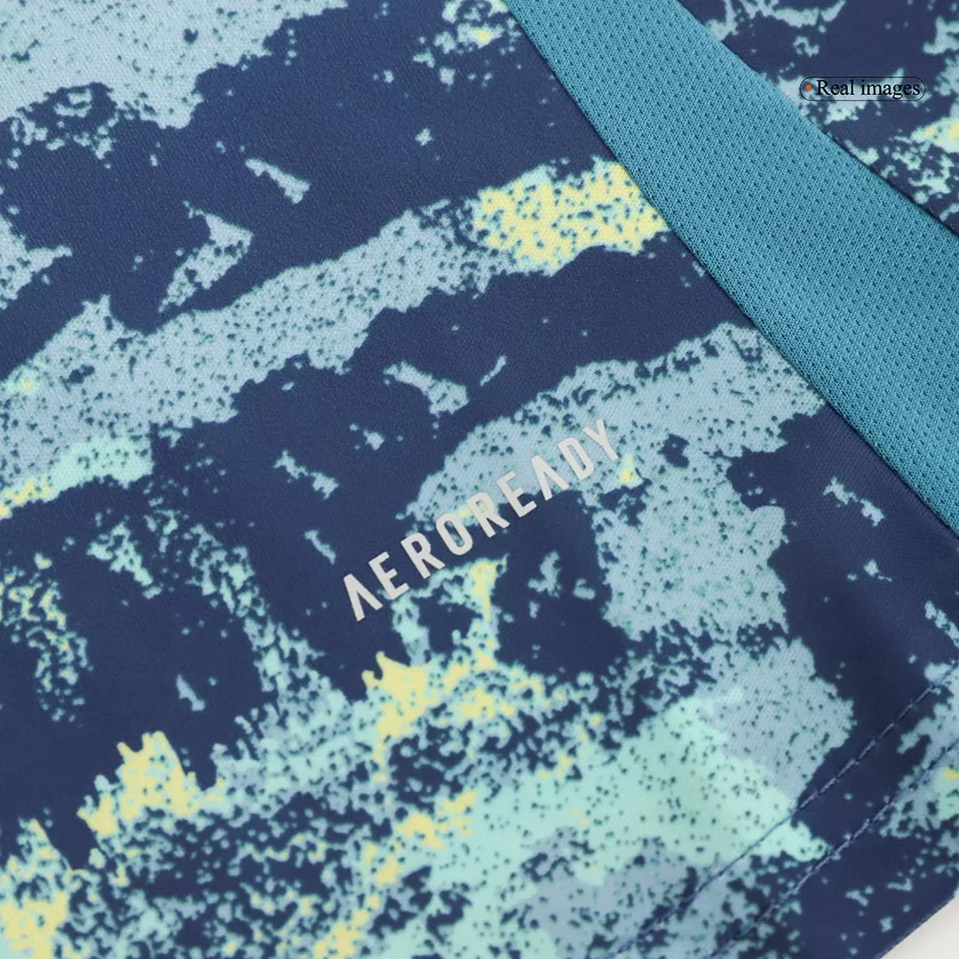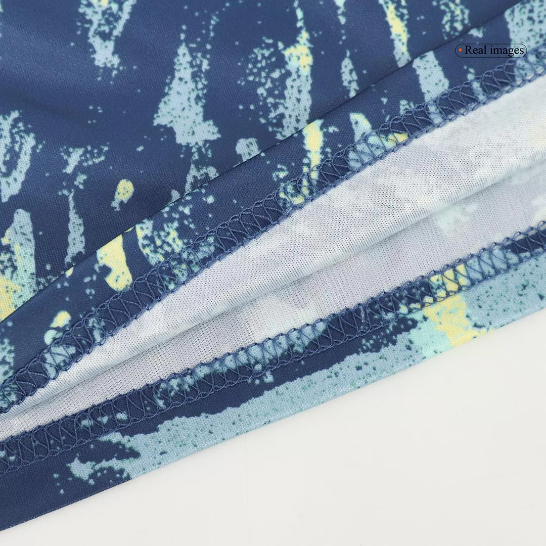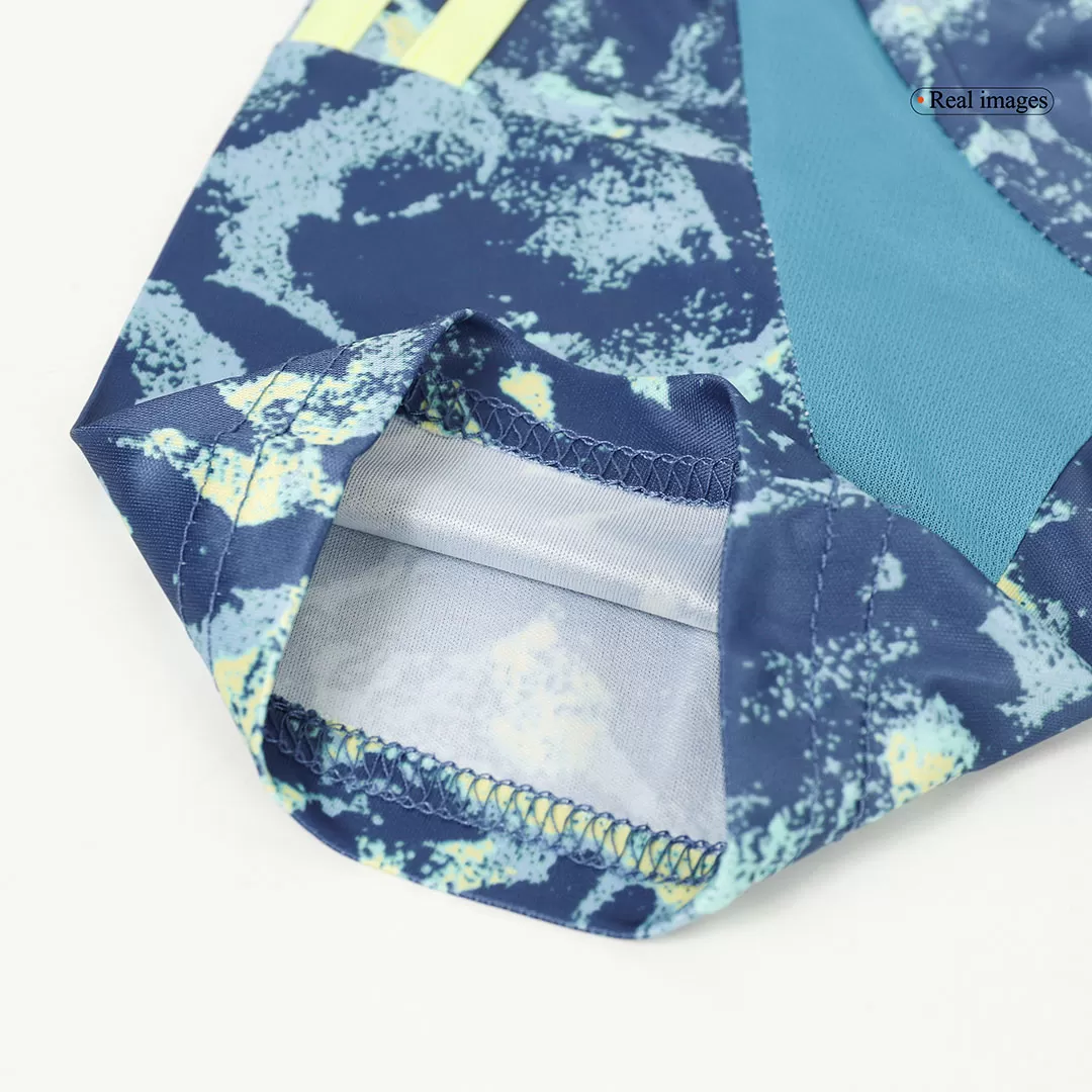 Bring the energy and spirit of one of football’s most iconic clubs to the pitch with the Ajax Away Kids Soccer Jersey Kit. Featuring a dynamic blue and teal abstract pattern paired with soft yellow accents, this kit celebrates Ajax’s vibrant legacy of skill and creativity. Designed for young athletes, the set combines breathable, lightweight fabric with advanced moisture-wicking technology to keep kids comfortable while they play their best game.