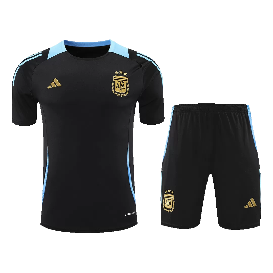 Step onto the pitch with the Argentina Pre-Match Jerseys Kit Copa America, featuring a sleek black base accented by sky blue stripes along the shoulders and sides, symbolizing the nation’s iconic colors with a modern twist. The elegant gold detailing on the crest and logos pays tribute to Argentina’s glorious football heritage and its three World Cup triumphs. Crafted for the player who demands both style and function, this kit combines breathable, lightweight fabric with advanced moisture-wicking technology to keep you cool and comfortable.