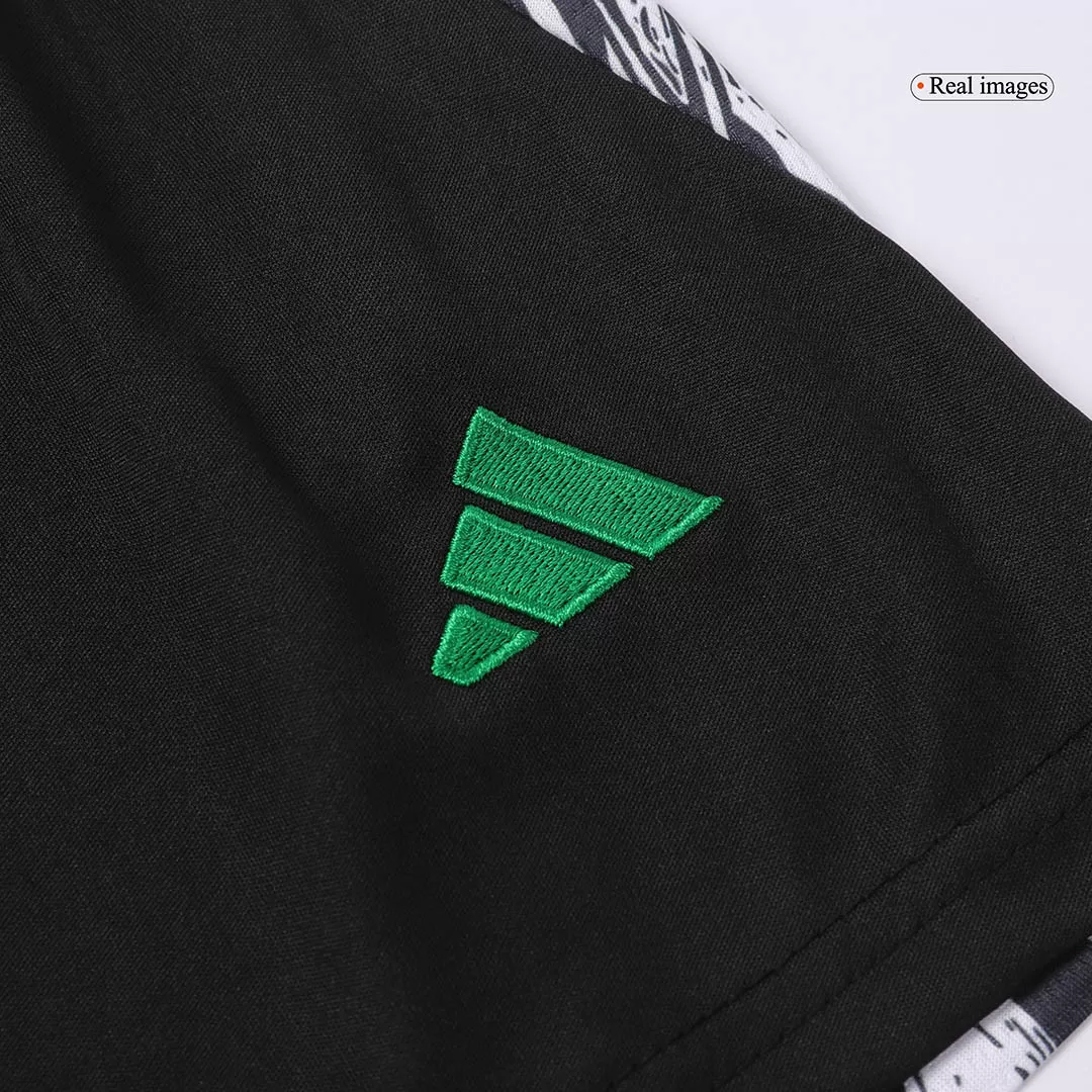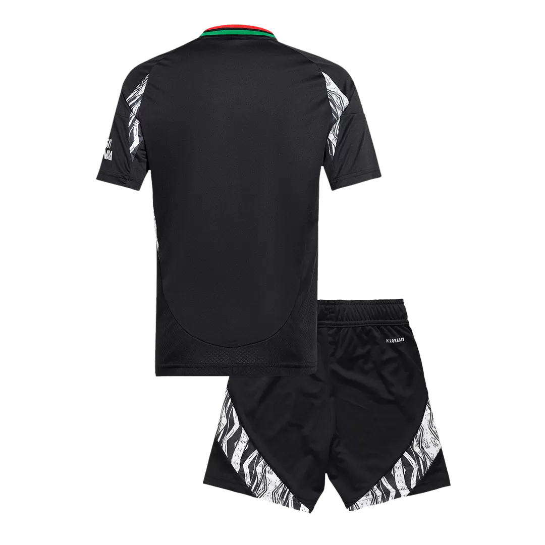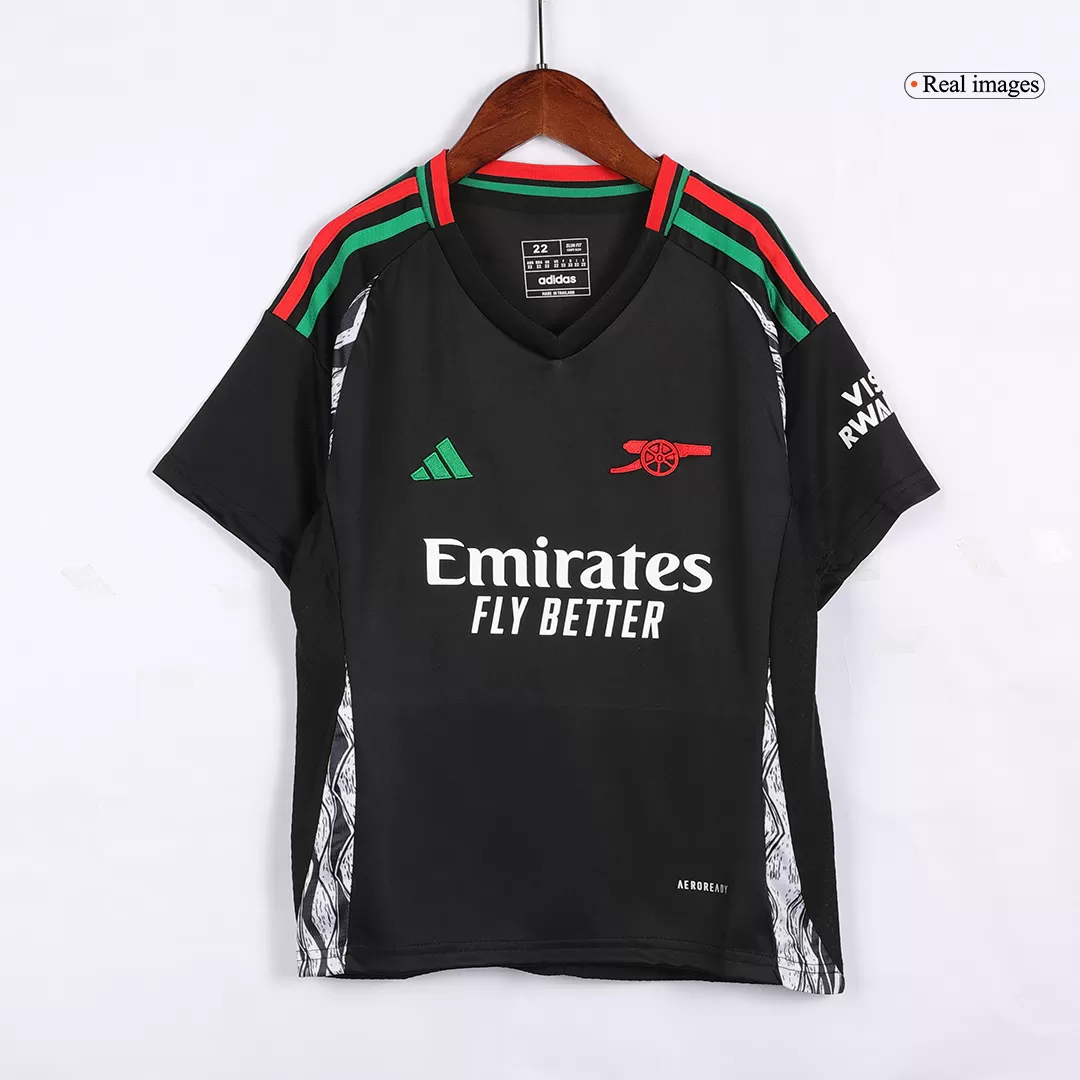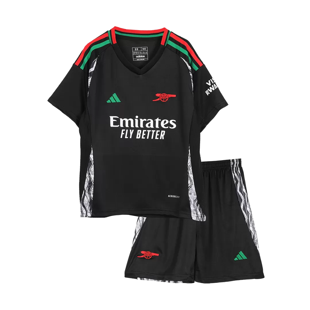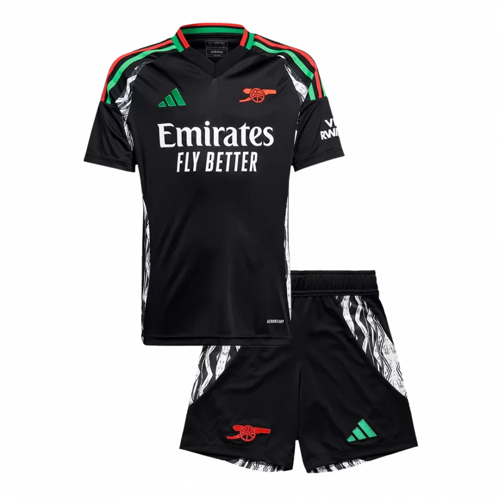 Step into the legacy of Arsenal with this dynamic Away Kids Soccer Jerseys Kit, featuring a bold black base complemented by striking red and green accents that pay homage to the club’s rich heritage. The jersey showcases a modern, athletic cut with distinctive patterned side panels, echoing a spirit of resilience and style synonymous with the Gunners. Crafted for young fans who play with passion, this kit blends performance and comfort with breathable, lightweight fabric designed to keep every young athlete cool and dry on the pitch.