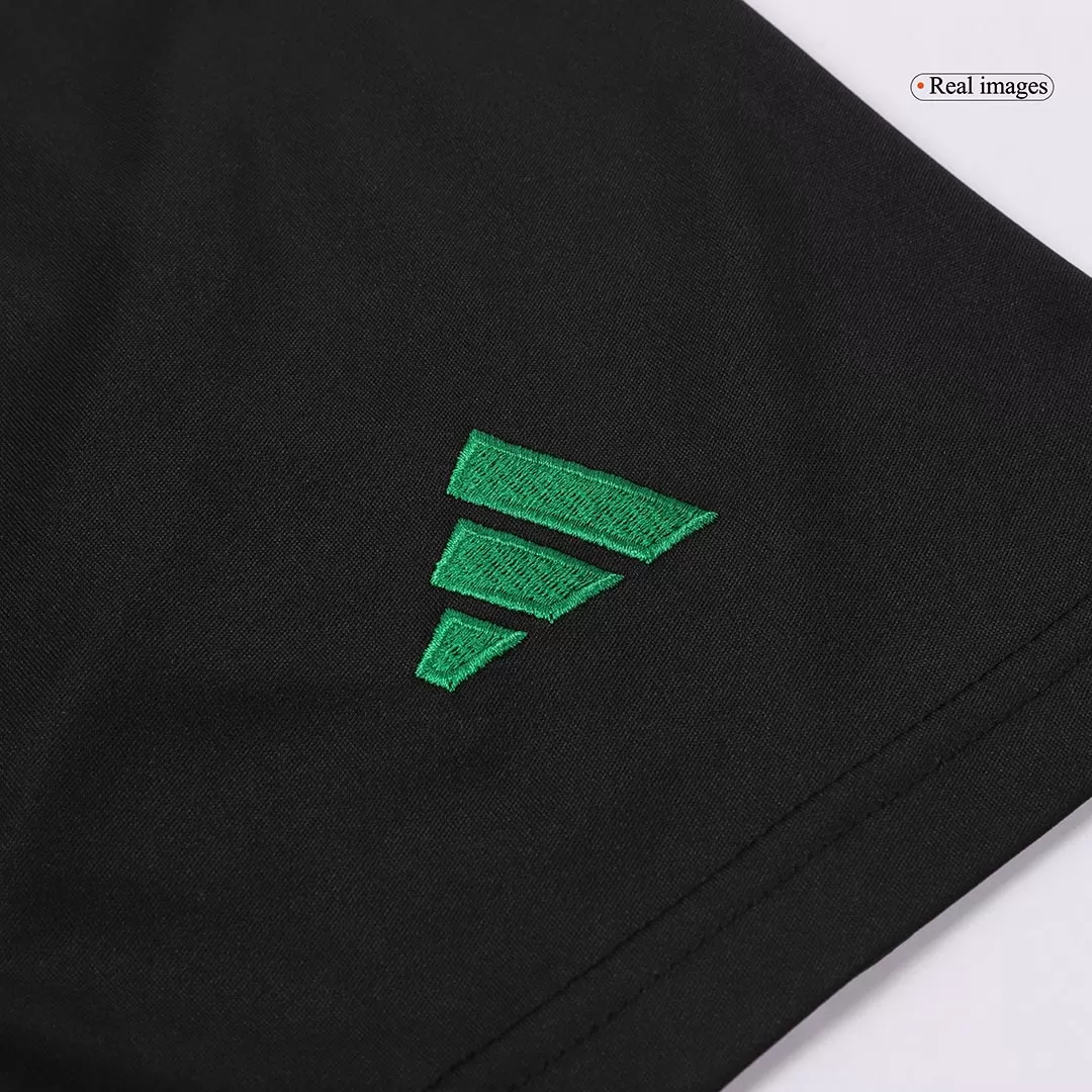 Step into the spirit of Arsenal’s unbeaten ambition with these striking Away Soccer Shorts. Featuring a bold black base with dynamic white patterned side panels, they embody modern energy while respecting the club’s rich heritage. Accented with the iconic red cannon and vibrant green details, these shorts honor Arsenal’s legacy of resilience and flair.