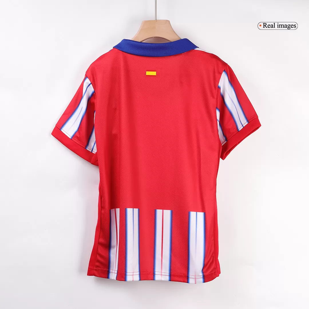 Ignite the passion of the Wanda Metropolitano with the Atletico Madrid Home Kids Soccer Jerseys Full Kit. Featuring the iconic red and white vertical stripes with subtle blue accents and a bold blue collar, this kit echoes the club’s proud tradition of tenacity and heart. Perfect for young fans ready to channel the grit and spirit that define Atletico Madrid’s legendary history.