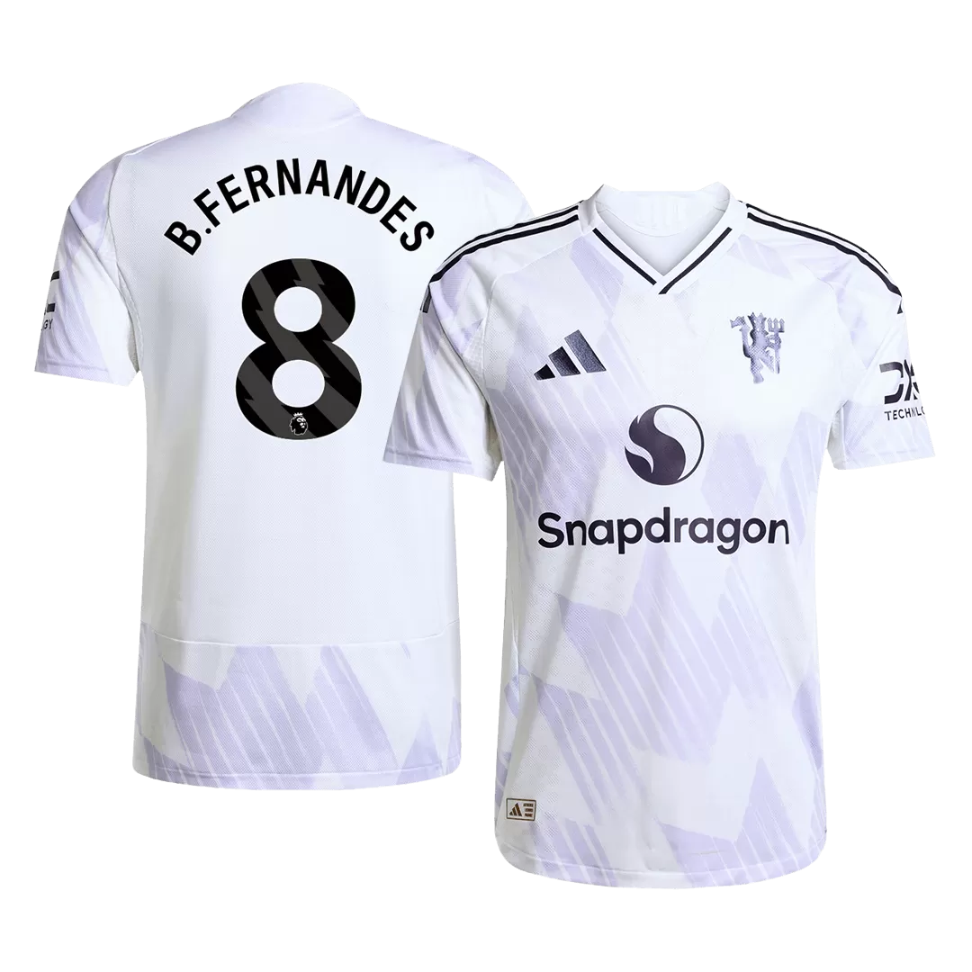Step onto the pitch with the B.FERNANDES #8 Manchester United Away Authentic Soccer Jersey 2025/26, a sleek tribute to the club’s storied legacy. This striking white jersey features subtle geometric patterns and sharp black accents on the collar and shoulders, reflecting Manchester United’s blend of tradition and modernity. Celebrating a team known for resilience and brilliance, this kit delivers unmatched comfort and performance on game day.