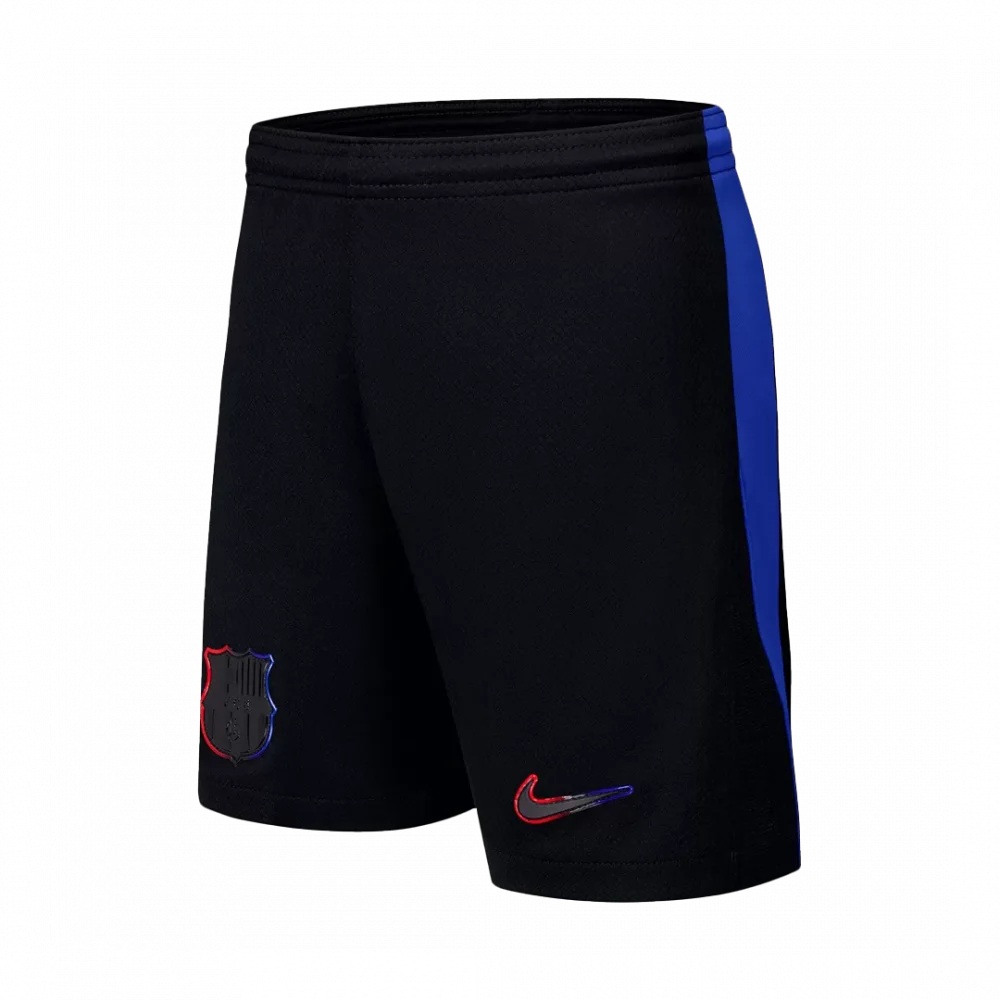 Command the pitch in the Barcelona Away Soccer Shorts, featuring a sleek black base accented with the club’s classic blue stripes along the sides. These shorts pay tribute to Barça’s legendary spirit of resilience and flair, carrying forward the team’s legacy of bold style and unmatched passion. Crafted with breathable, moisture-wicking fabric and a lightweight fit, they ensure you stay comfortable and agile in every moment of play.