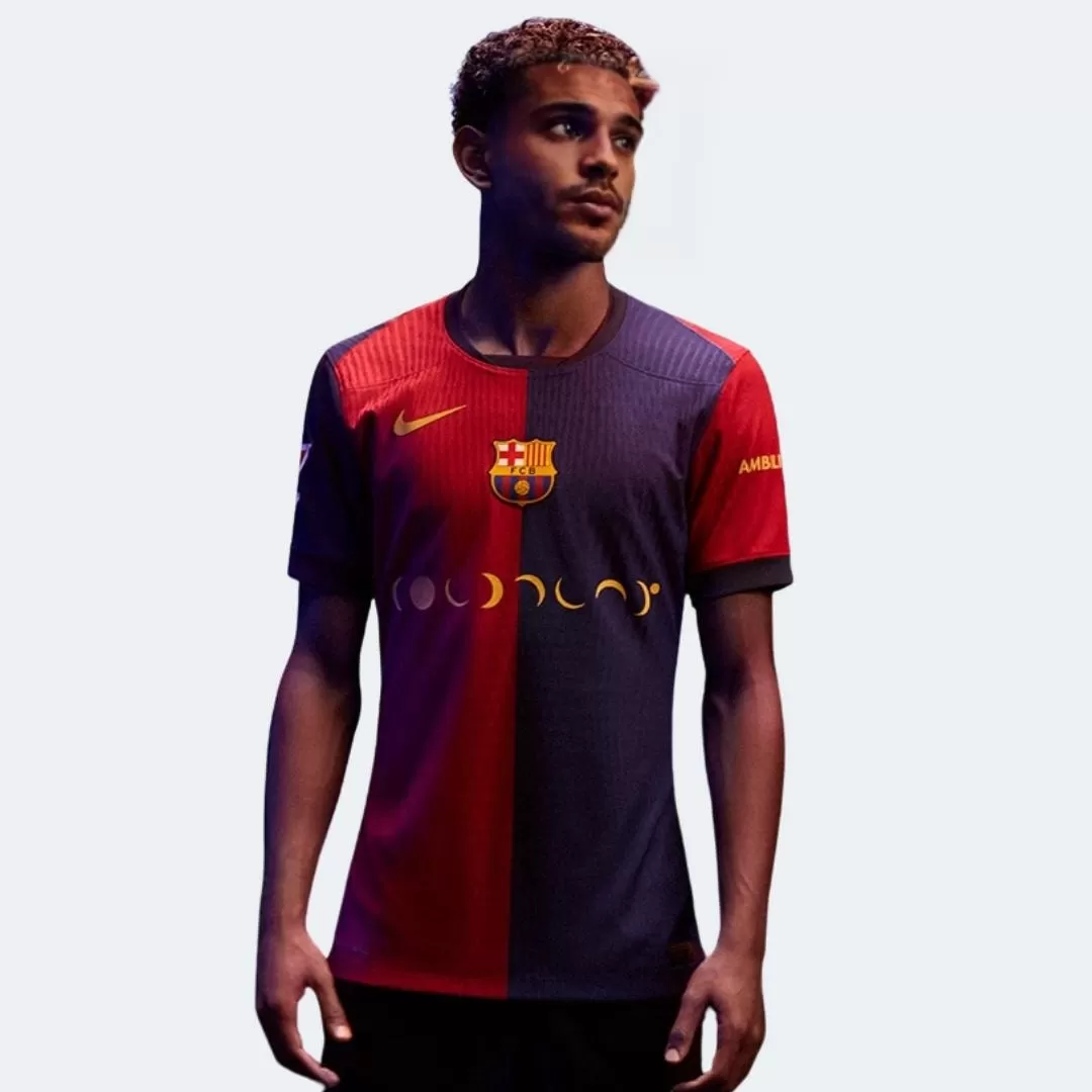 Step onto the pitch with the Barcelona Home Authentic Soccer Jersey, reimagined with a bold half-and-half design that blends the club’s legendary deep red and royal blue. This edition features a sleek, minimalist crest and a unique gold moon phase graphic across the chest, symbolizing growth and transformation—an homage to both the club’s historic roots and its forward-looking spirit. Perfect for fans who live and breathe the passion of Barça.