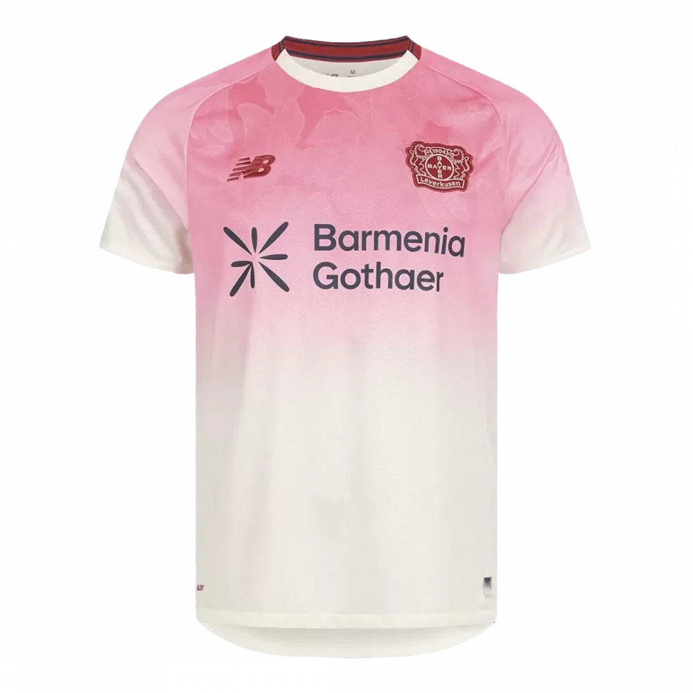 Step onto the pitch with the Bayer 04 Leverkusen Away Soccer Jersey 2025/26, where tradition meets modern flair. This striking jersey fades from a delicate rose pink to pristine white, subtly embossed with iconic floral patterns that pay homage to the club’s heritage and vibrant community spirit. Engineered for peak performance, it combines breathable, lightweight fabric with advanced moisture-wicking to keep you cool and comfortable during every match.
