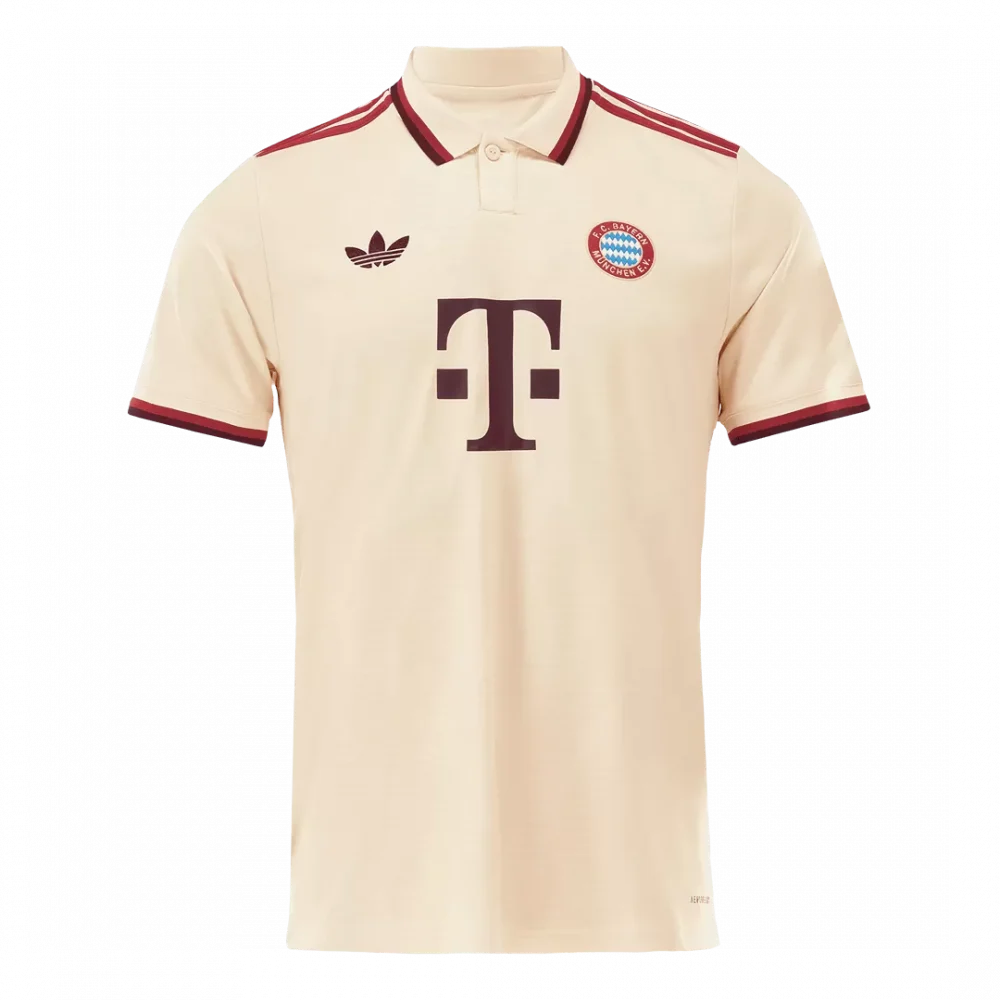 Step onto the pitch with timeless style and modern performance in the Bayern Munich Third Away Soccer Jersey. Featuring a classic cream base accented by deep red details on the collar, sleeves, and iconic three stripes, this jersey pays homage to the club’s rich heritage while standing out in every competition, including the UCL. The understated elegance combines smoothly with functional design to keep you comfortable and focused from kickoff to final whistle.