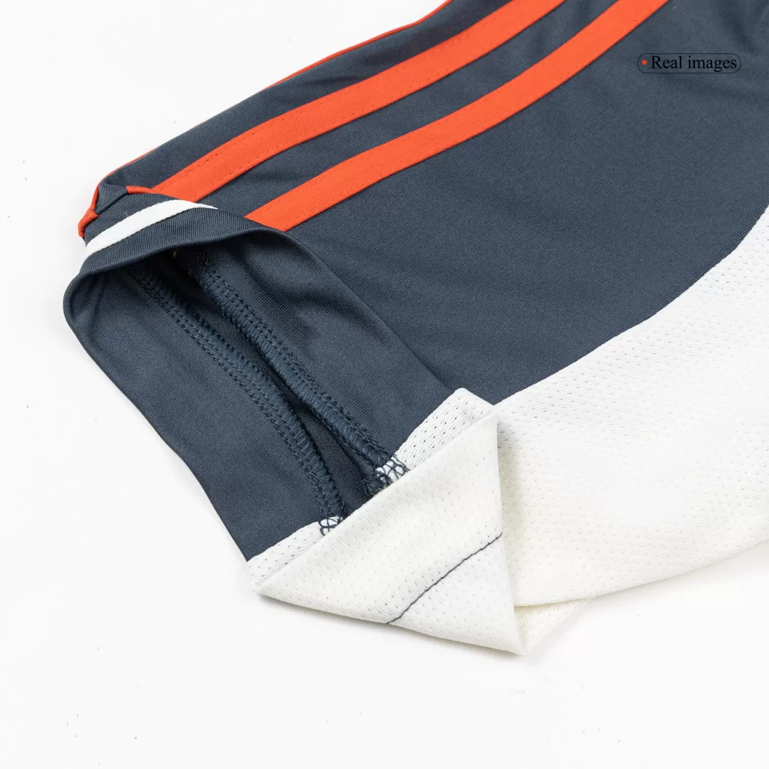 Step into the spirit of Bayern Munich with the US Pack Shirt 25/26 in a sleek gray palette, punctuated by subtle pinstripes and vibrant coral accents along the shoulders and sides. This jersey pays homage to the club’s rich heritage and relentless drive for excellence, blending classic design elements with contemporary flair. Crafted to keep you comfortable and sharp, it features breathable, moisture-wicking fabric and a lightweight feel that moves with you on and off the pitch.