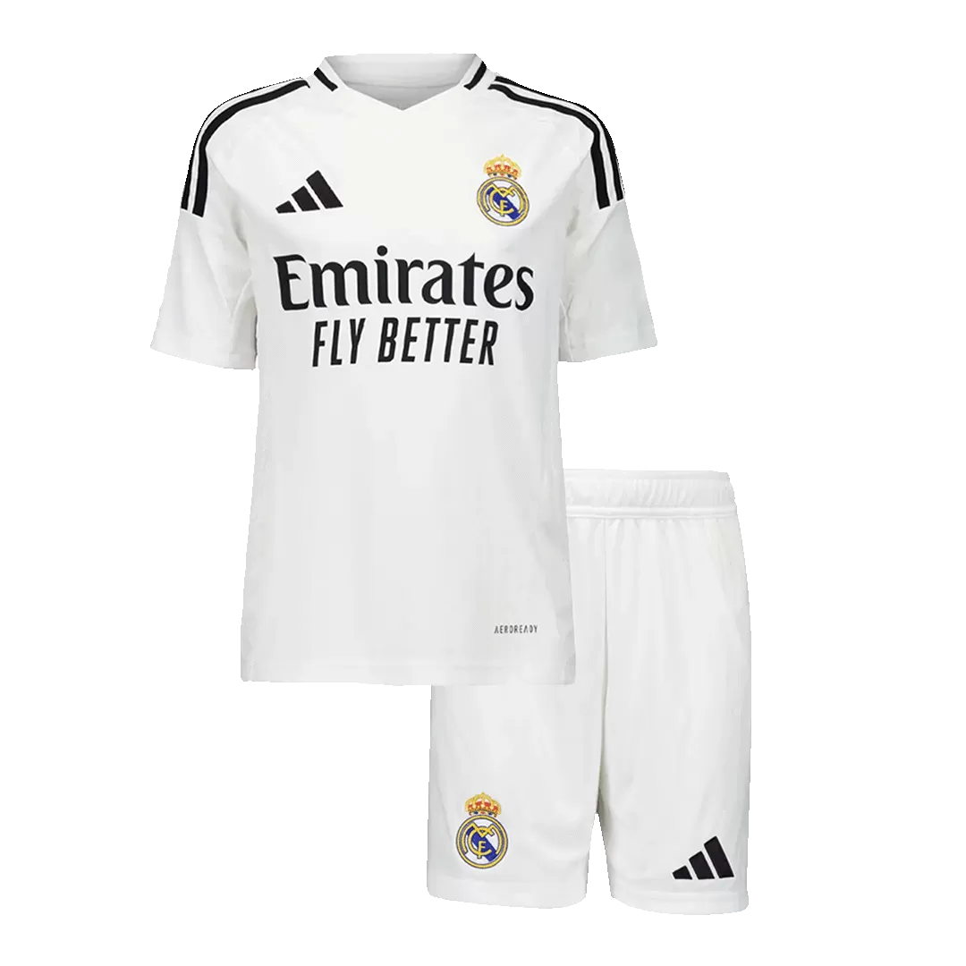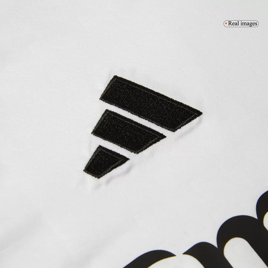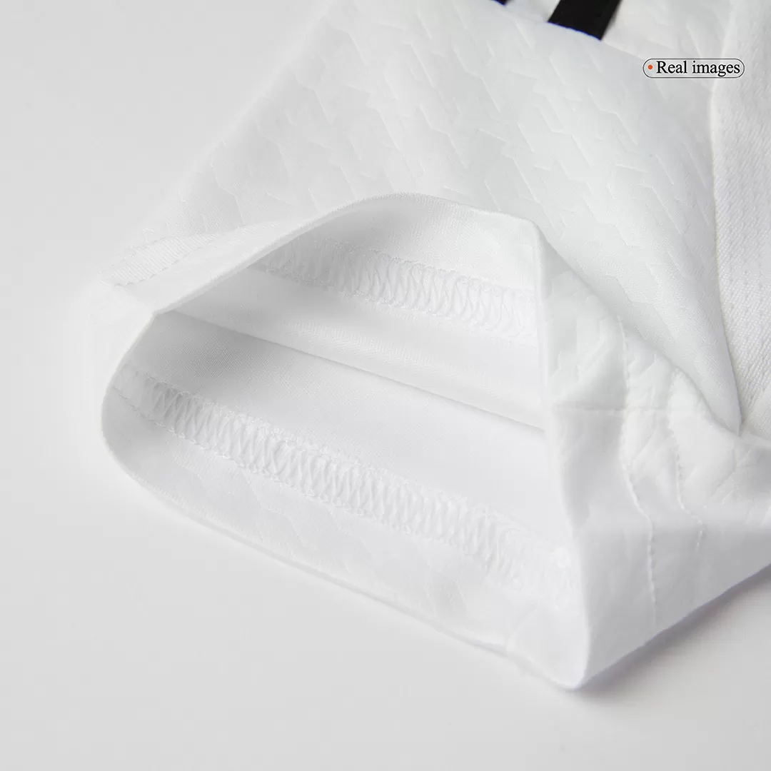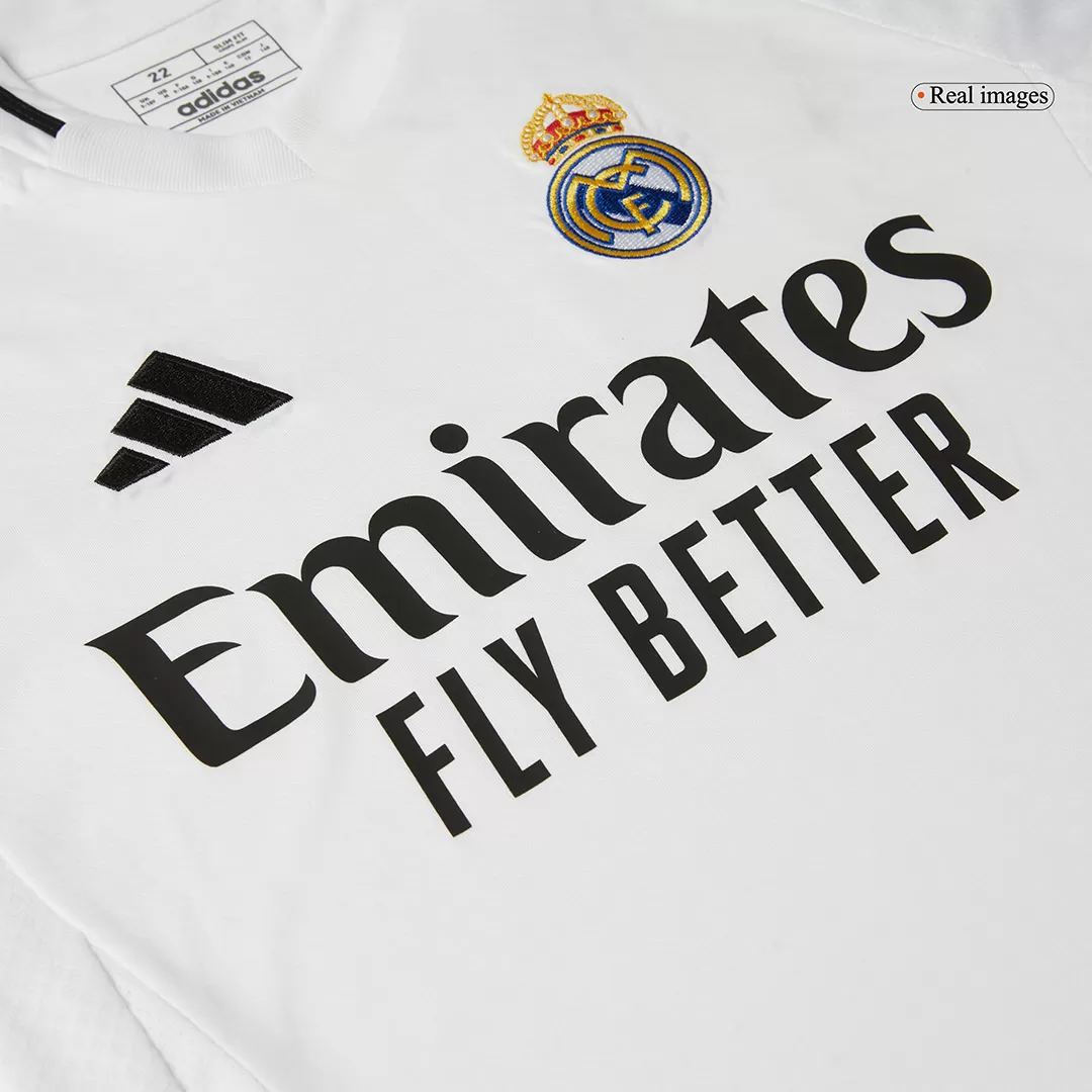 Step onto the pitch with the BELLINGHAM #5 Real Madrid Home Kids Soccer Jerseys Kit, showcasing a timeless all-white design accented by sleek black detailing on the collar and player name. This kit embodies the rich tradition of Real Madrid, a club renowned for its elegance, pride, and relentless pursuit of victory. Crafted to keep young athletes comfortable and focused, it features breathable, lightweight fabric with advanced moisture-wicking properties.