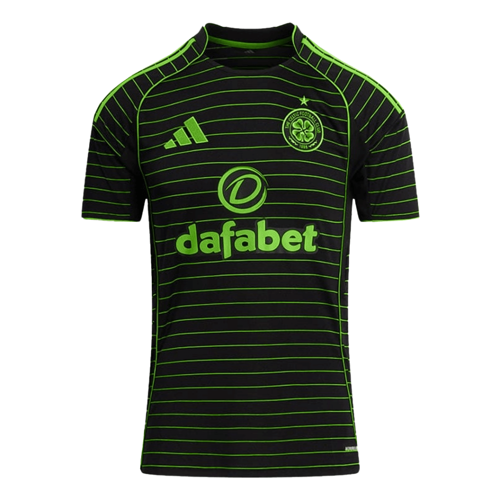 Step into the spotlight with the Celtic Away Soccer Jersey 2025/26. Featuring striking neon green horizontal pinstripes set against a sleek black backdrop, this design captures the club’s fearless spirit and rich history of battling with pride. The prominent four-leaf clover crest shines brightly, symbolizing Celtic’s enduring legacy as one of Scotland’s most revered teams.