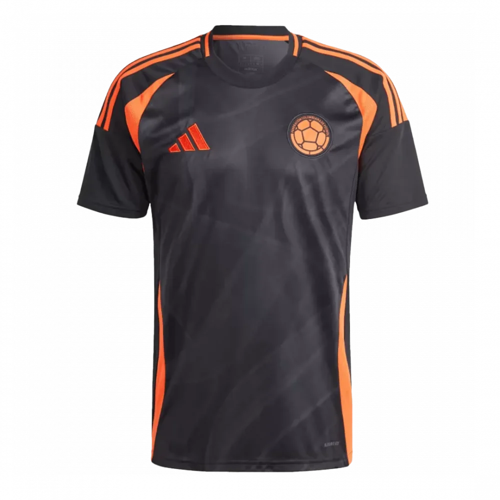 Step onto the pitch with the Colombia Away Soccer Jersey Copa America, where bold design meets rich football heritage. This striking jersey features a sleek black base accented with vibrant orange stripes and panels, symbolizing Colombia’s fiery spirit and passion for the game. Subtle geometric patterns add dynamic depth, reflecting the energy and precision of the national team’s playstyle. Crafted from lightweight, breathable fabric with advanced moisture-wicking technology, it keeps you cool and dry in every match.