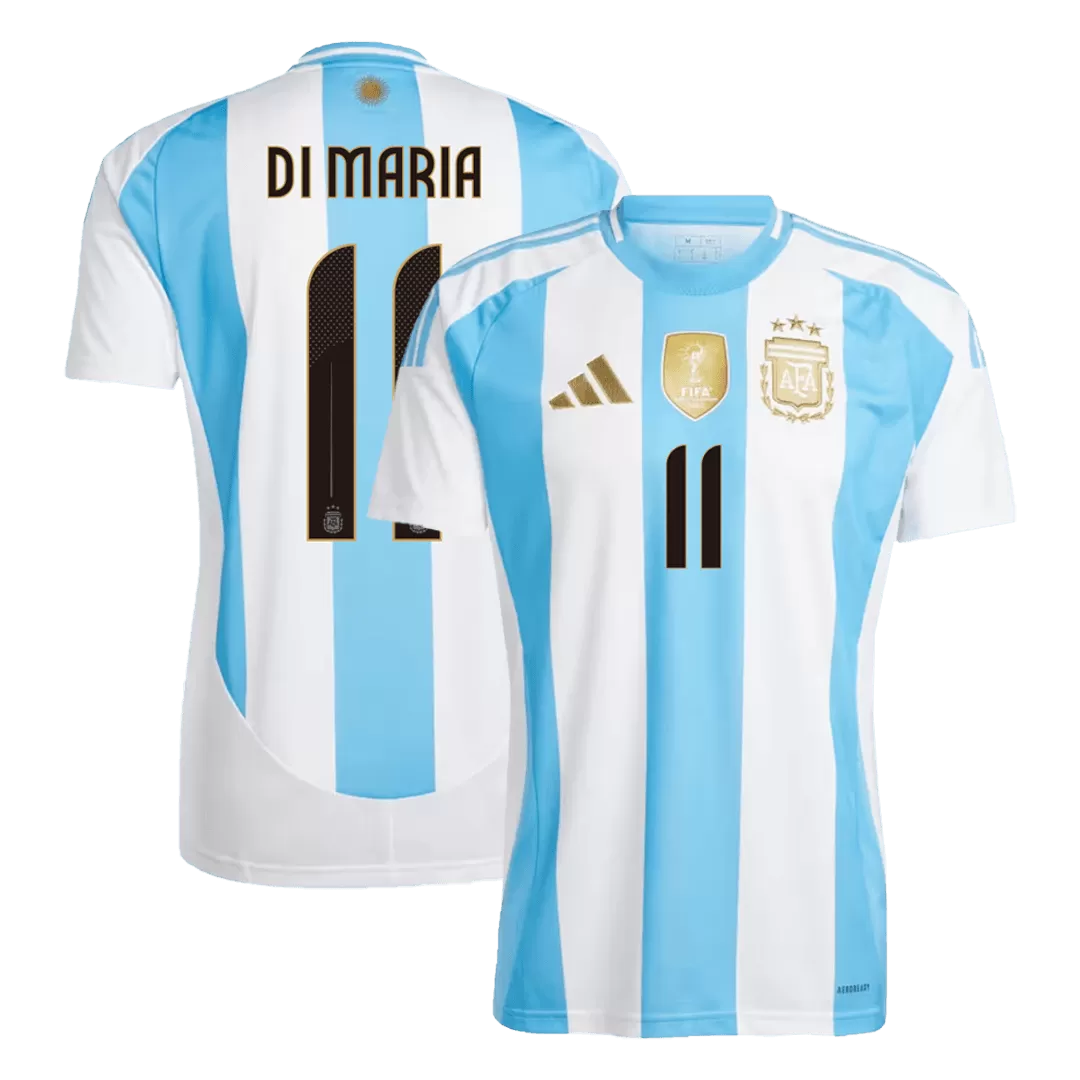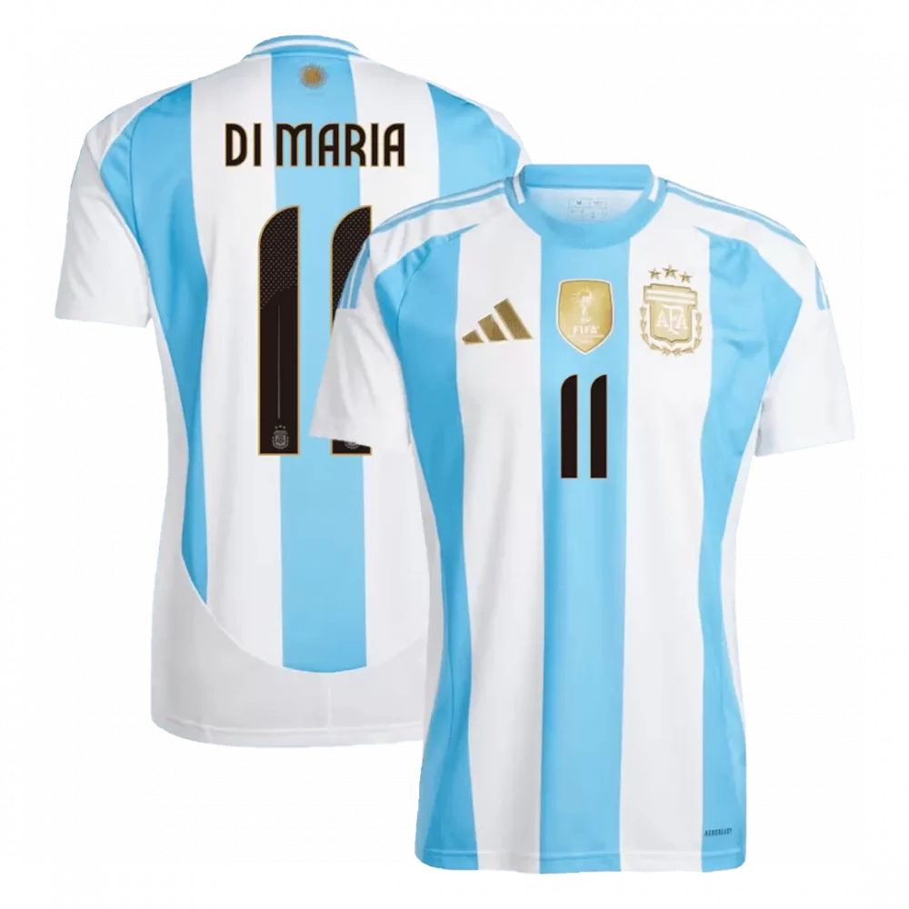 Celebrate the passion and pride of Argentine football with the DI MARIA #11 Argentina Home Soccer Jersey. Featuring the iconic sky blue and white vertical stripes that symbolize the nation’s rich football heritage, this jersey is a tribute to legends and a statement for the future. Gold accents highlight the crest and player number, adding a premium touch to the classic design. Engineered with breathable, moisture-wicking fabric, it keeps you cool and comfortable whether you’re on the pitch or cheering from the stands.