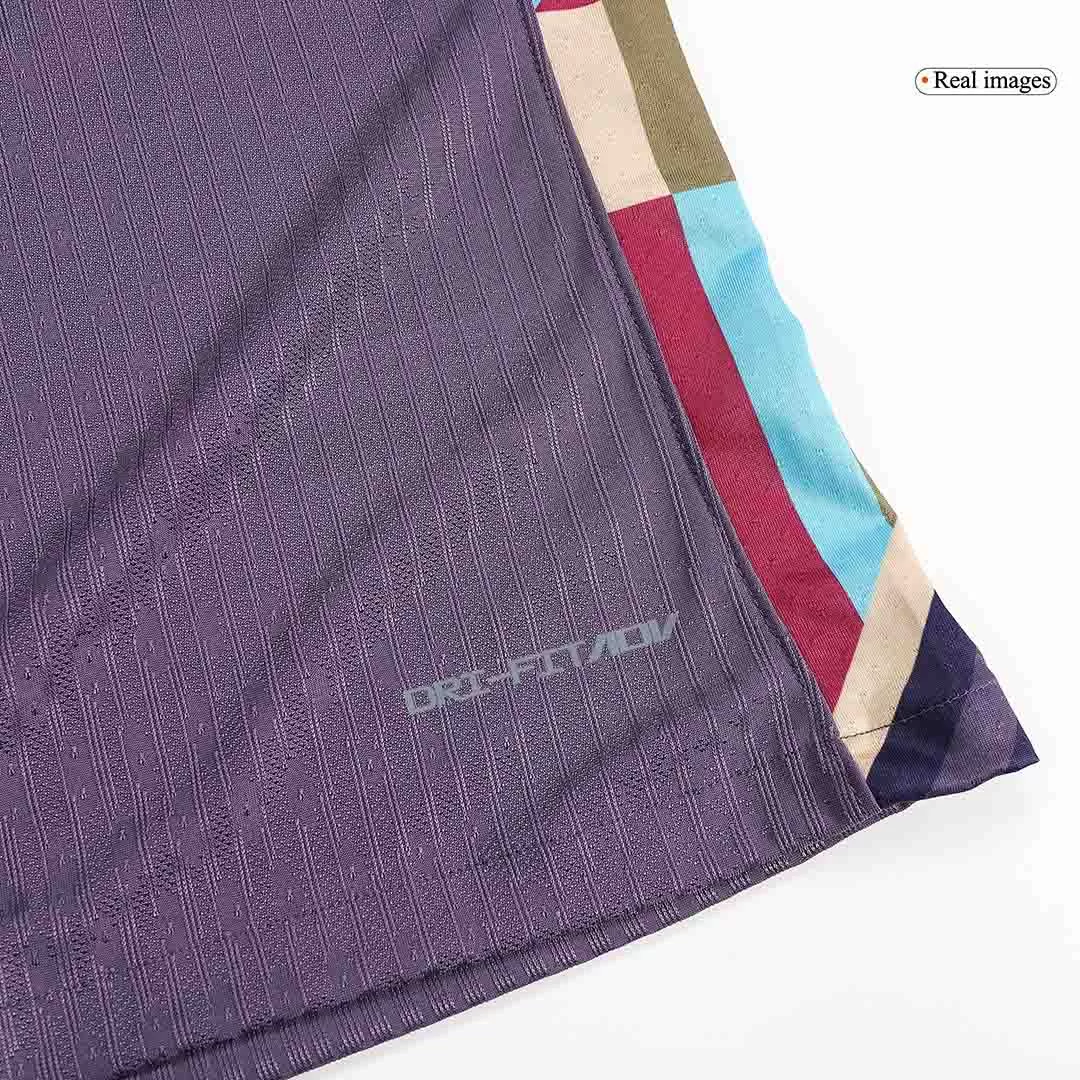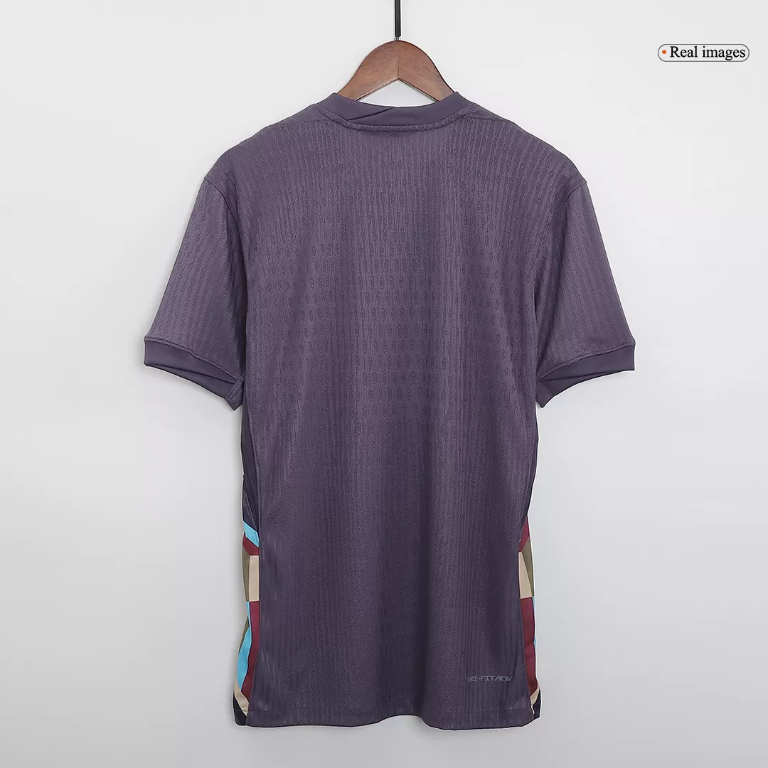 Step into the history and passion of English football with the England Away Authentic Soccer Jersey EURO. This deep purple kit features subtle textured patterns that add depth and sophistication, while the iconic three lions crest pays tribute to decades of national pride and triumph. Bright accents along the sides bring a modern, dynamic feel, perfectly blending tradition with contemporary style.