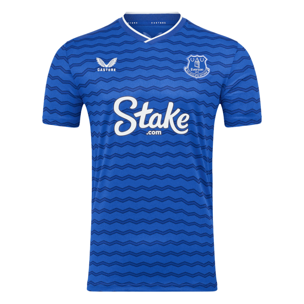 Embrace the spirit of the Toffees with the Everton Home Soccer Jersey 2025/26. Featuring a vibrant royal blue base enhanced by a subtle zigzag pattern throughout, this design pays homage to the club’s rich maritime heritage and enduring resilience. The crisp white trim on the V-neck collar adds a classic touch, while the embroidered crest proudly celebrates Everton’s proud legacy since 1878.