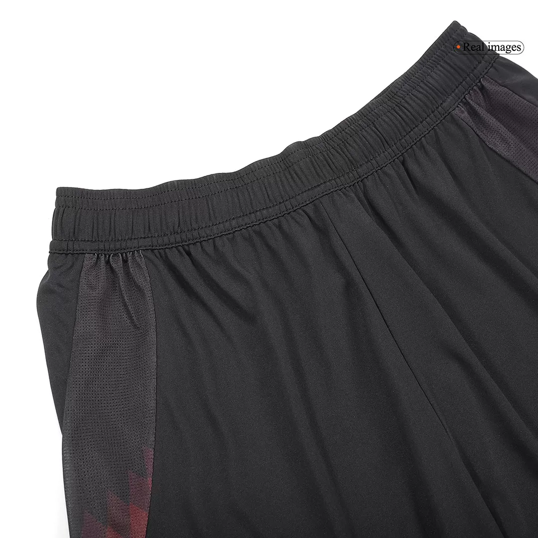 Step onto the pitch with the Germany Home Soccer Shorts, crafted in a sleek black base accented by a dynamic fade of red and subtle geometric patterns along the sides. These shorts pay tribute to Germany’s rich football heritage, symbolized by the iconic crest adorned with four stars that represent the team’s historic World Cup triumphs. Designed to optimize your performance, they combine lightweight, breathable fabric with advanced moisture-wicking properties to keep you cool and dry under pressure.