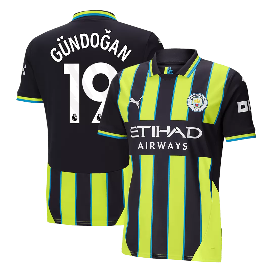 Step onto the pitch with the GÜNDOĞAN #19 Manchester City Away Soccer Jersey, featuring a bold black base contrasted by vibrant neon yellow and electric blue vertical stripes that capture the energy and spirit of the Cityzens. This design pays tribute to the club’s innovative style and relentless drive, embodying Manchester City’s dynamic identity both on and off the field. Crafted for peak performance, the jersey offers breathable, moisture-wicking fabric and a lightweight fit that keeps you comfortable from kickoff to final whistle.