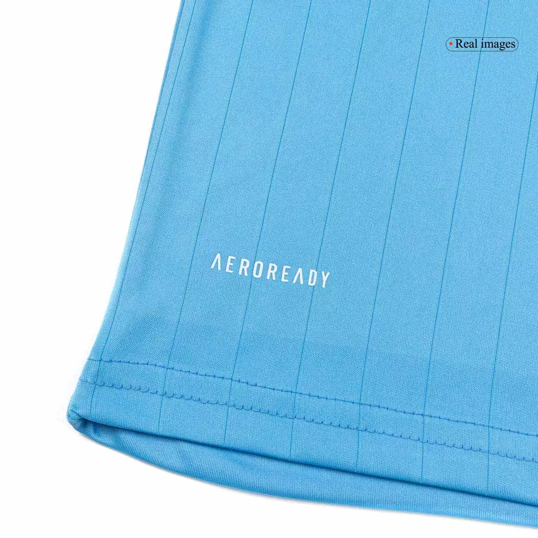 Step onto the pitch in vibrant style with the Inter Miami CF Third Away Kids Soccer Jerseys Kit 2025. Featuring a refreshing sky-blue base accented by soft pink stripes on the shoulders and collar, this kit captures the dynamic spirit and coastal energy of Miami. The subtle vertical pinstripes add texture and modern flair, while the club crest proudly celebrates the team’s bold identity and growing legacy.