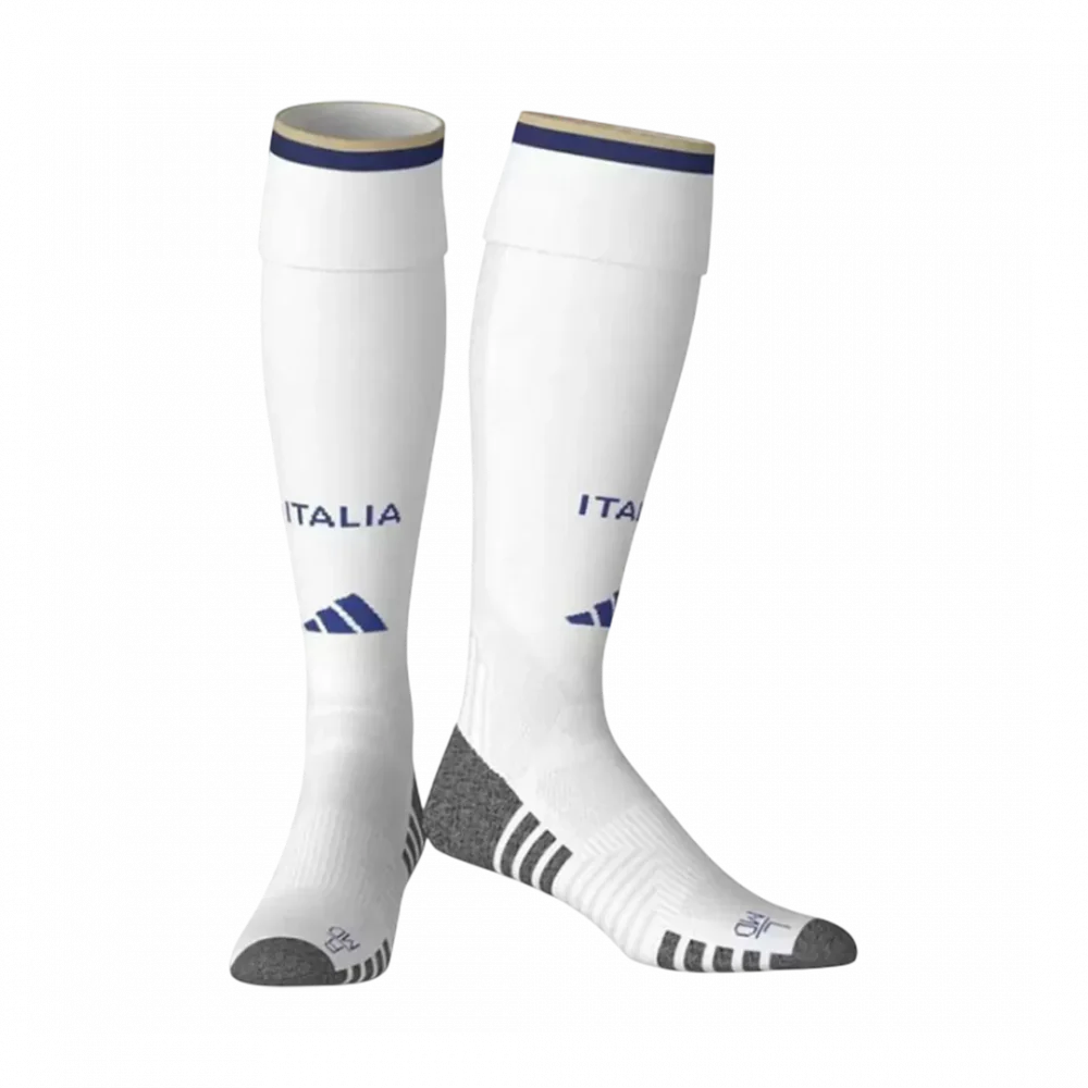 Step into the spirit of Azzurri pride with the Italy Home Soccer Socks 2026. Featuring a clean white base accented by subtle navy and gold stripes at the cuff, these socks reflect the timeless elegance and passion of Italy’s football heritage. The bold “ITALIA” lettering channels national pride, making them a perfect complement to the iconic blue kits worn by the champions of the game.