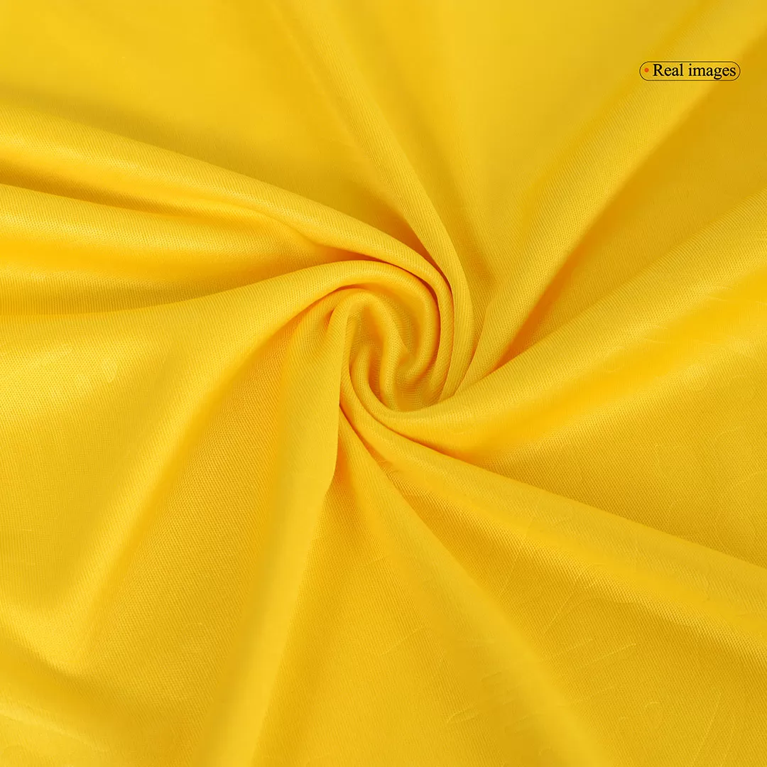 Step into the spirit of Jamaica with the Home Soccer Jersey Copa America, a vibrant tribute to the nation’s iconic black, green, and gold colors. This striking design features a bold yellow body with contrasting green sleeves and black detailing, embodying the energy and pride that define Jamaican football. Subtle patterns across the front nod to the rich cultural heritage, making this jersey a true emblem of the team’s legacy.