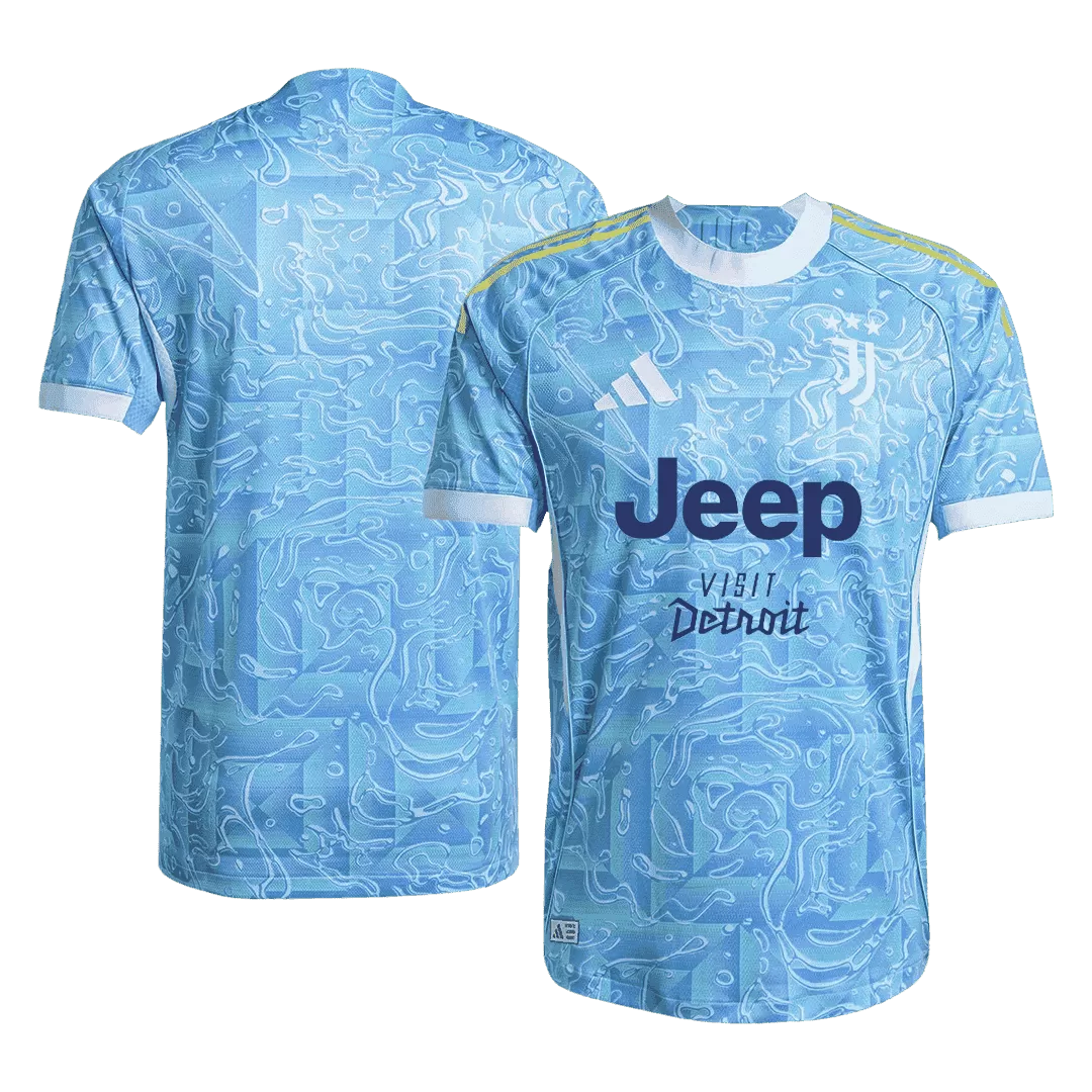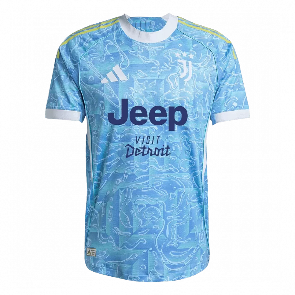 Step onto the field with the Juventus Away Authentic Soccer Jersey 2025/26, featuring an eye-catching sky blue with subtle white and neon yellow accents that evoke energy and modernity. The intricate swirling pattern pays homage to the club’s rich legacy of creativity and flair, blending tradition with a bold new direction. Crafted for peak performance, this jersey combines breathable, lightweight fabric with advanced moisture-wicking properties to keep you cool and dry in every match.