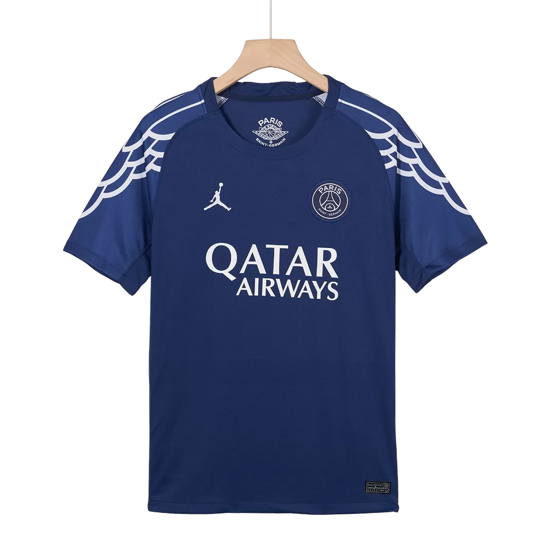 Step onto the pitch in the striking KVARATSKHELIA #7 PSG Fourth Away Soccer Jersey, a bold tribute to Paris Saint-Germain’s flair and ambition. Drenched in deep blue, this jersey features iconic white wing motifs on the shoulders symbolizing speed and freedom, blending modern style with the club’s soaring legacy in European football. Lightweight and crafted with breathable, moisture-wicking fabric, it ensures top performance whether you’re scoring or defending.