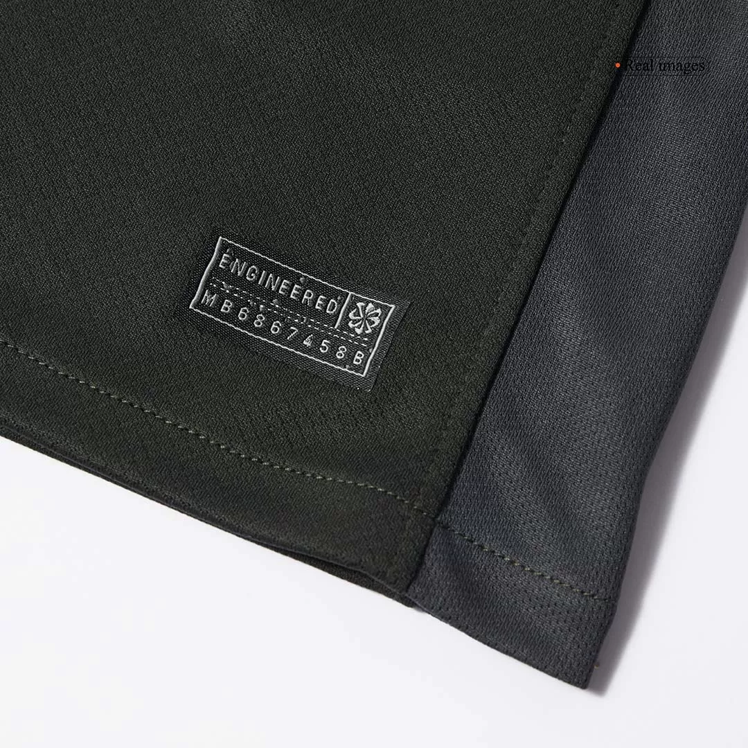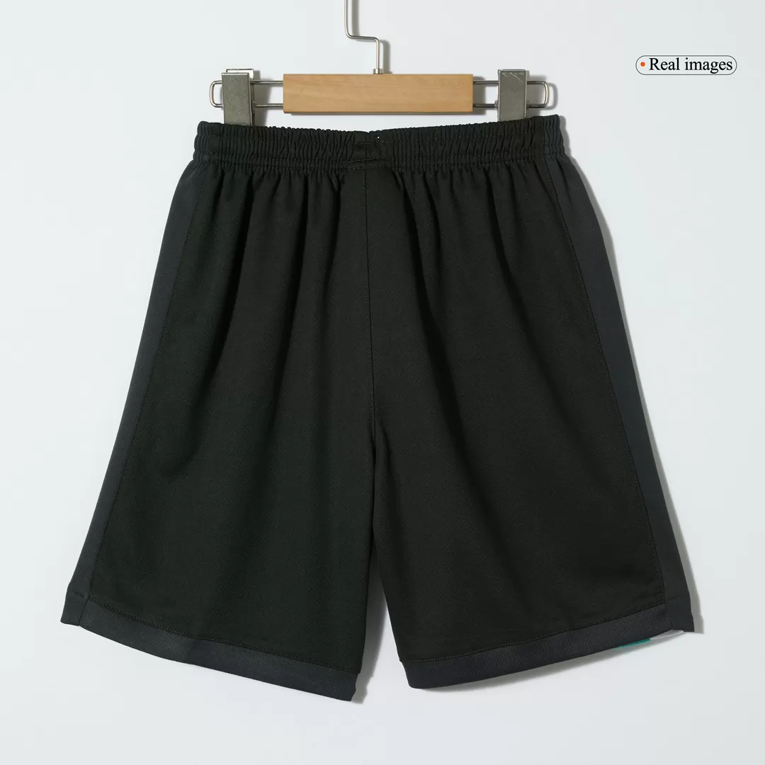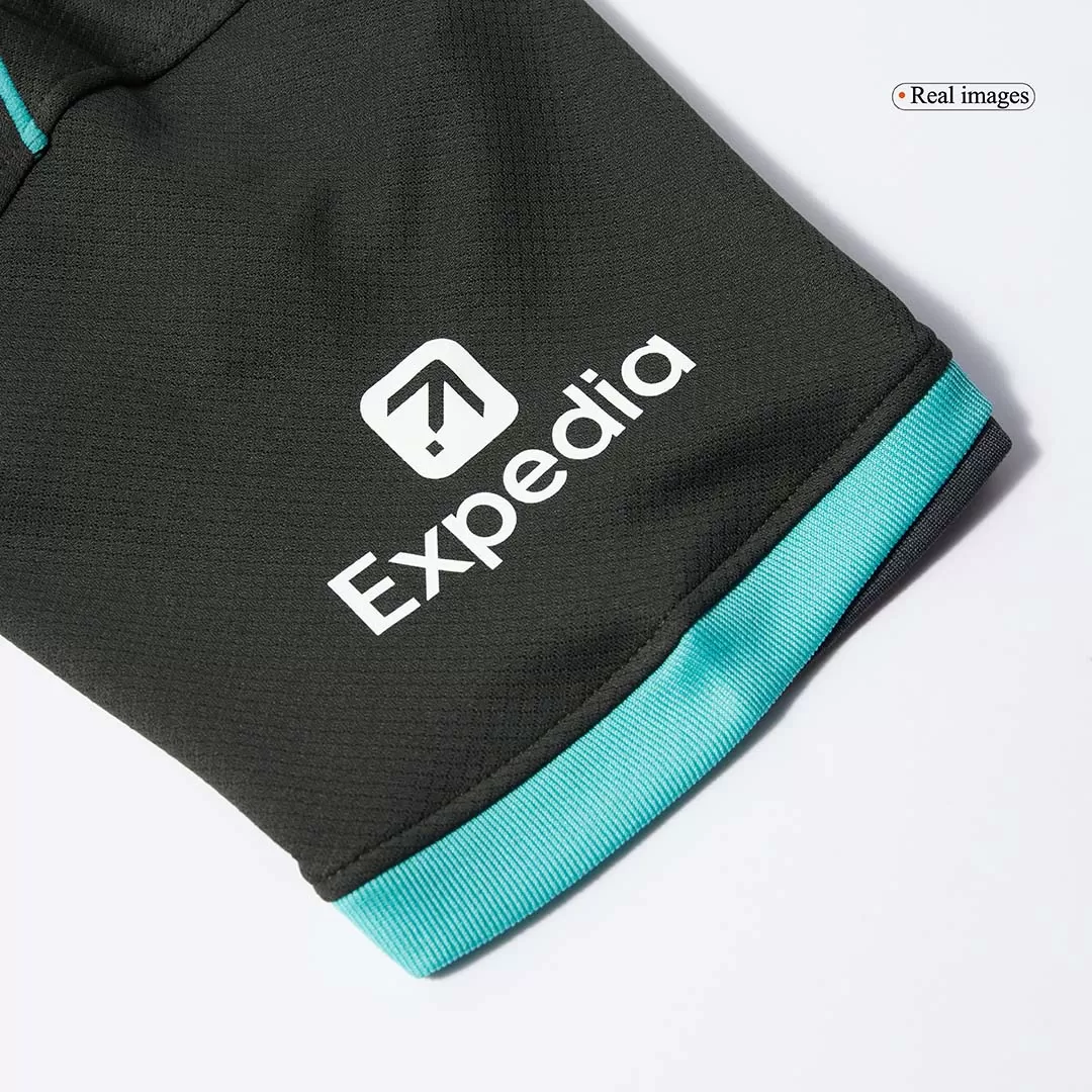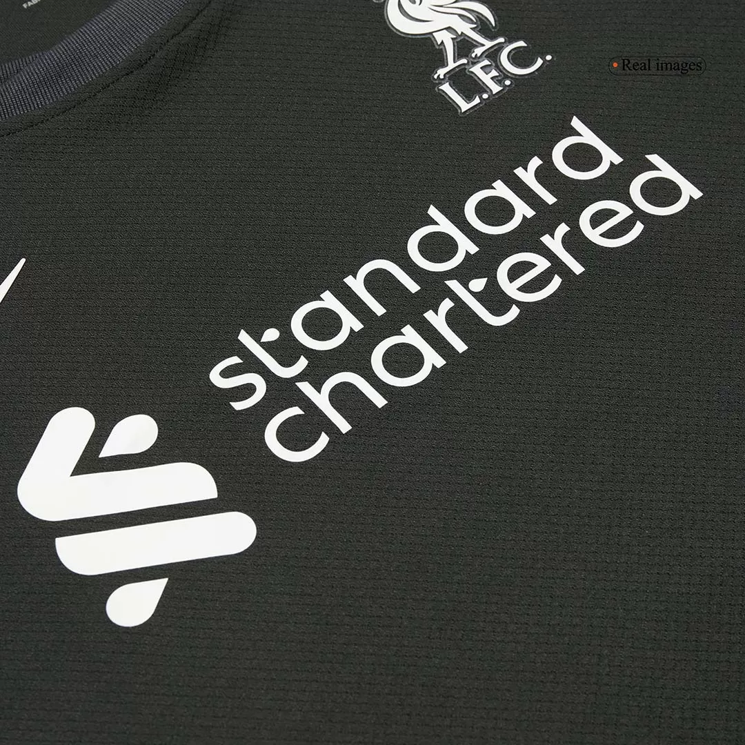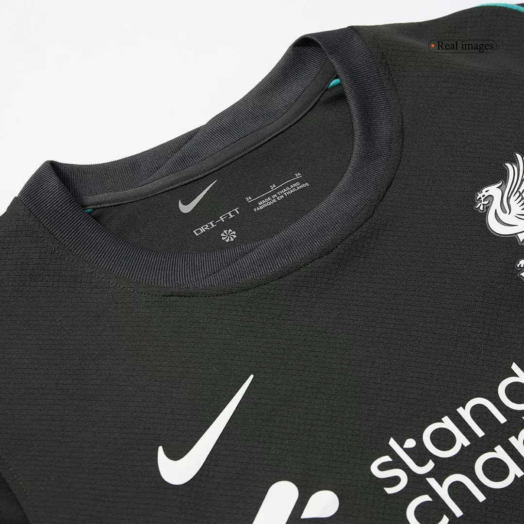 Step into the spirit of the Reds with the Liverpool Away Kids Soccer Jerseys Kit, featuring a sleek black base accented by vibrant teal highlights on the sleeves and shorts. This bold, modern design echoes Liverpool’s fearless approach and rich football heritage, perfect for young fans ready to embrace the club’s relentless energy. Crafted with breathable, lightweight fabric and advanced moisture-wicking to keep kids cool and comfortable on the pitch.