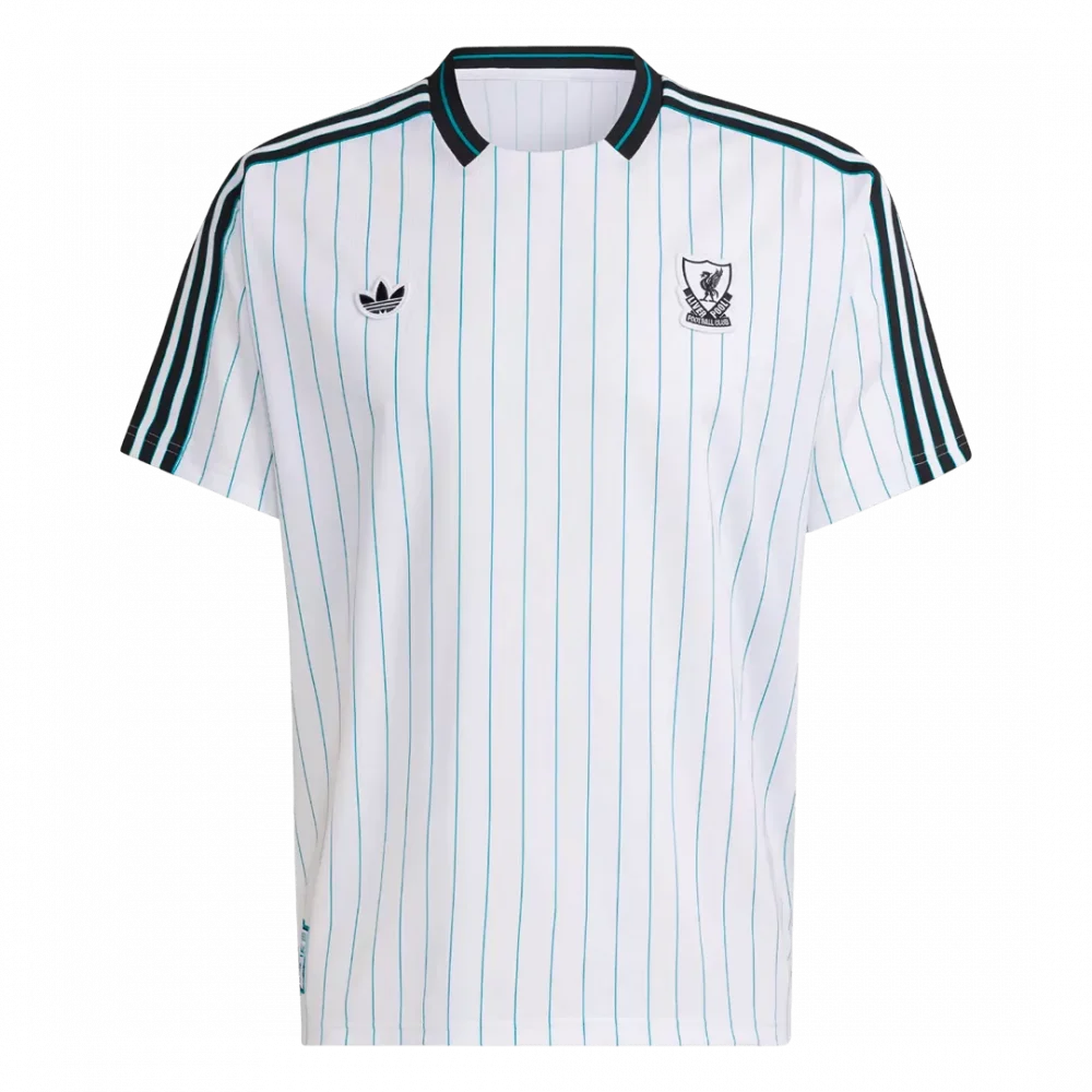Step into a timeless classic with the Liverpool Icon Soccer Jersey 2025/26. Featuring crisp white fabric adorned with subtle teal pinstripes and bold black accents along the collar and shoulders, this design pays homage to the club’s storied heritage and its enduring style both on and off the pitch. A perfect blend of retro charm and modern performance, it captures the spirit of Liverpool’s legendary past while gearing you up for today’s game.