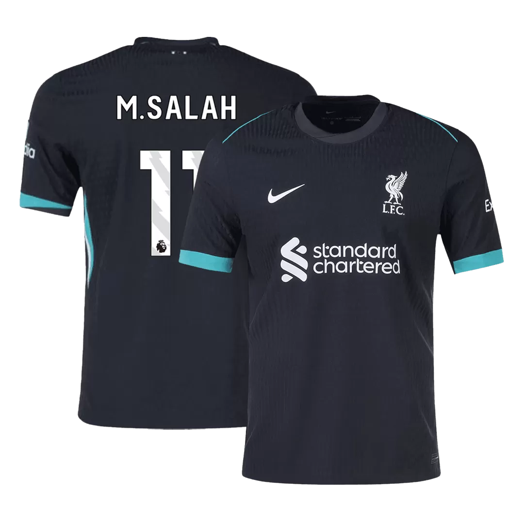 Step into the action with the M.SALAH #11 Liverpool Away Authentic Soccer Jersey, featuring a sleek dark navy base highlighted with vibrant turquoise accents on the sleeves and shoulders. This modern design pays homage to Liverpool’s storied history while embracing a fresh, bold look for away matches. Built for serious performance, the jersey combines breathable, lightweight fabric with advanced moisture-wicking technology to keep you cool and dry on and off the pitch.