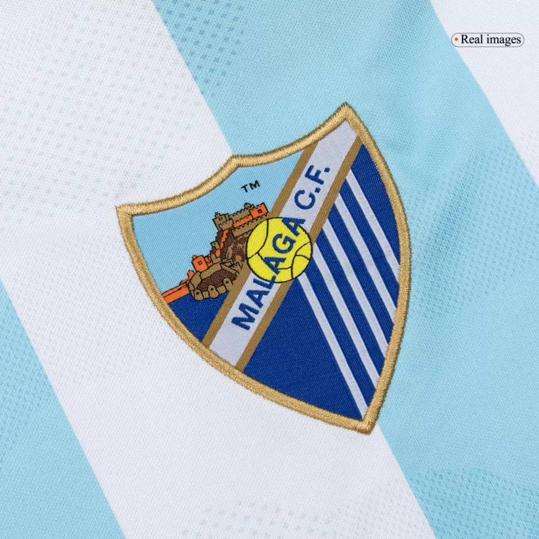 • Bold blue accents and club crest celebrate Málaga’s storied history