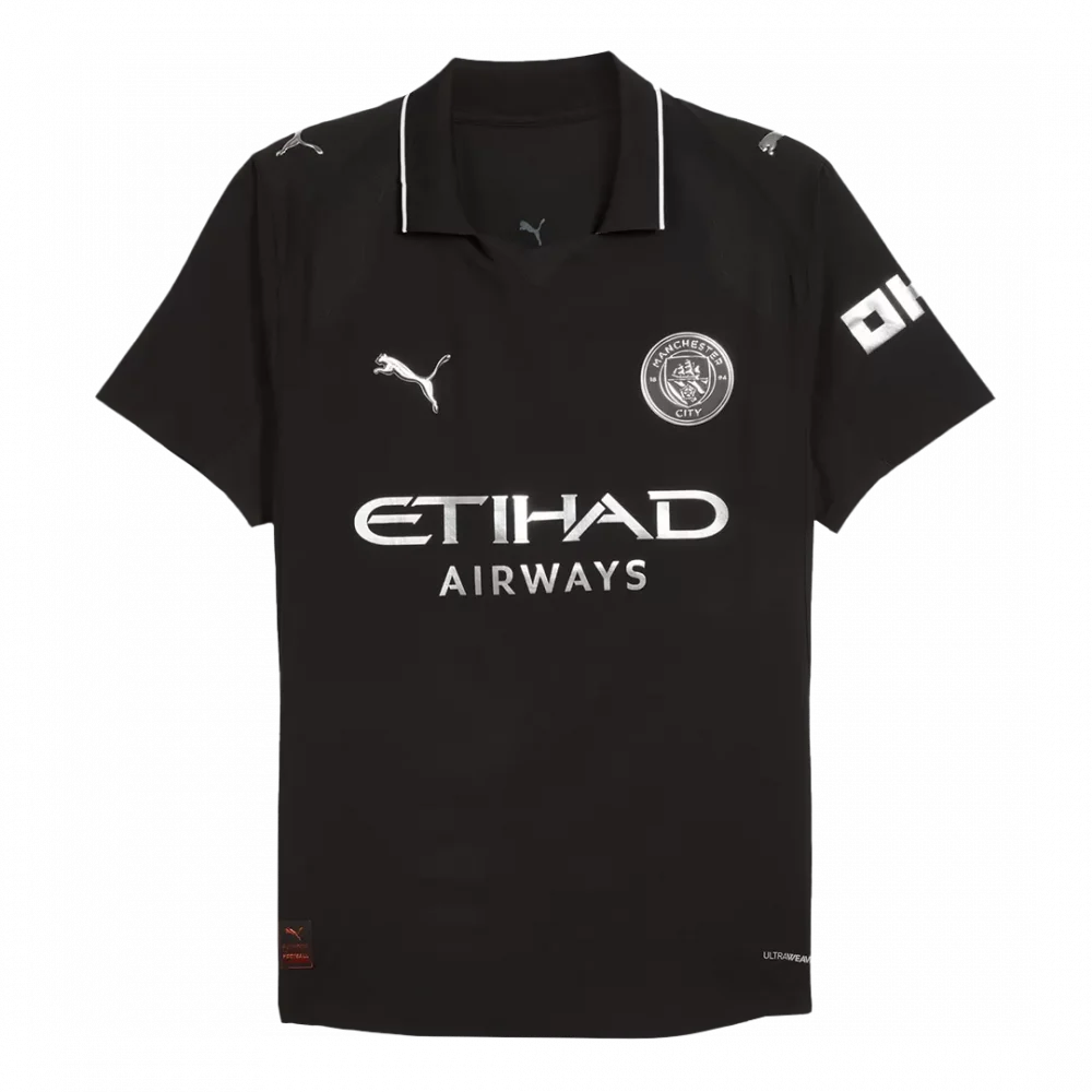Step out with confidence in the Manchester City Away Authentic Soccer Jersey 2025/26. Featuring a sleek black base with crisp white accents on the collar and logos, this jersey echoes the club’s relentless drive and modern edge. It’s a stylish tribute to the team’s evolving legacy while delivering top-tier comfort for fans and players alike.