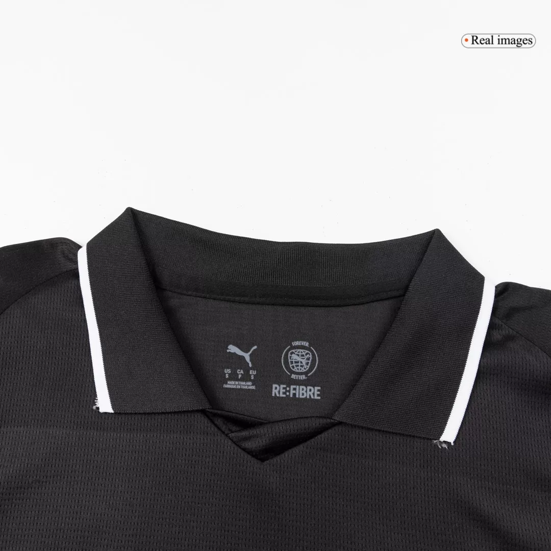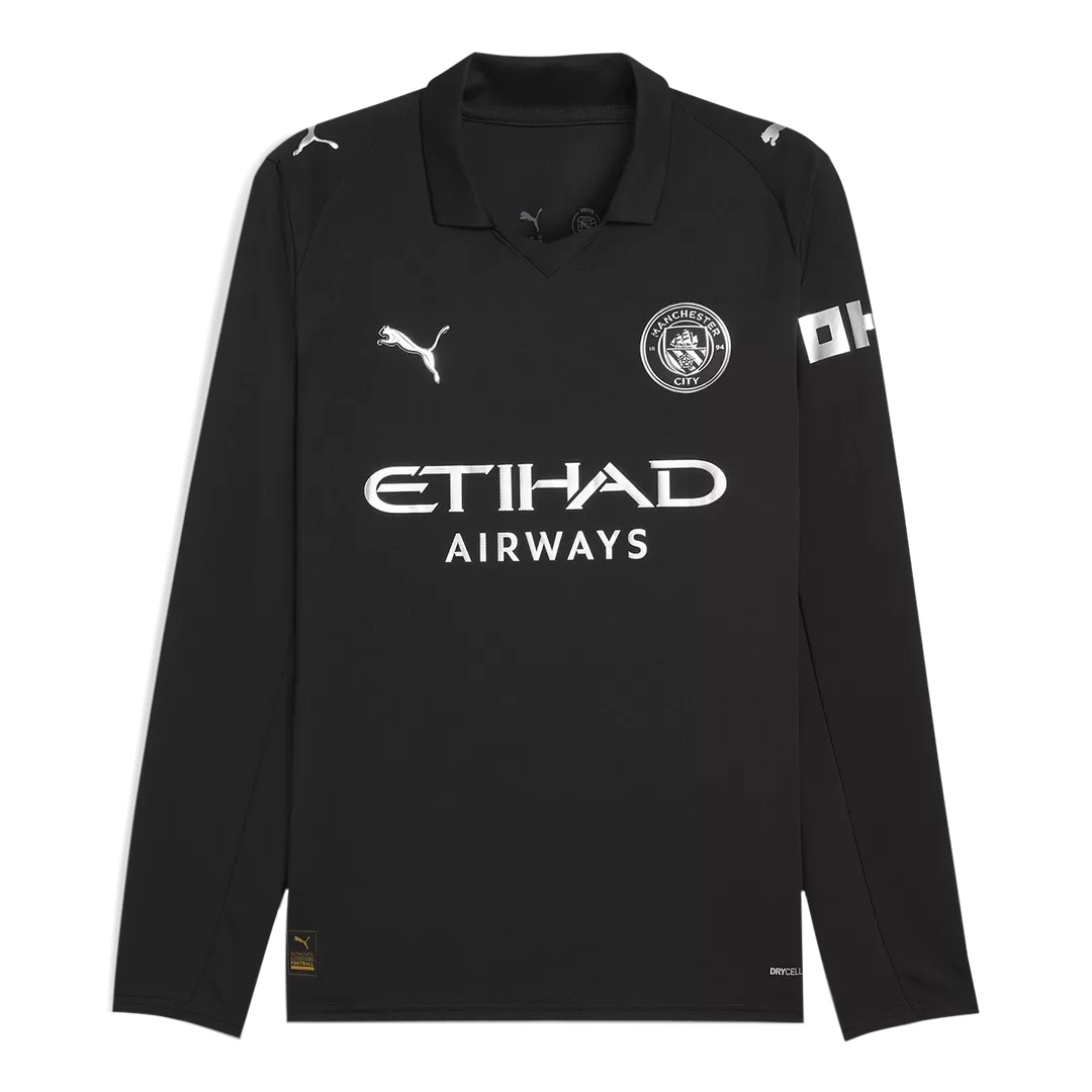 Step into the future of Manchester City’s legacy with the 2025/26 Away Long Sleeve Jersey. Featuring a sleek, all-black design with contrasting white details, this jersey reflects the club’s relentless ambition and modern edge. The classic collar adds a touch of tradition while maintaining a sharp, contemporary look that honors the team’s rich history of excellence.