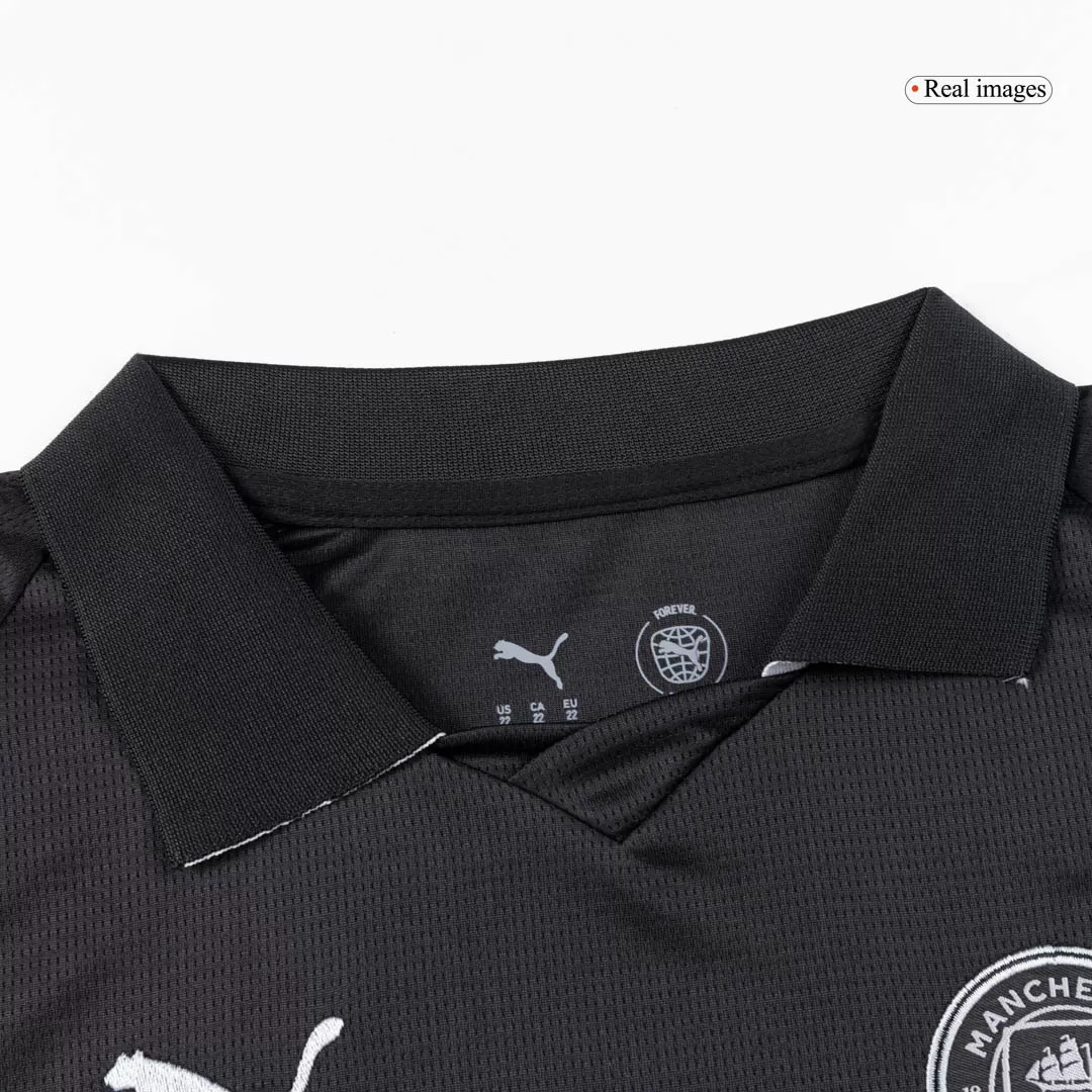 Step into the city’s spirit with the Manchester City Away Soccer Jersey 2025/26 Kids, featuring a sleek all-black design that symbolizes strength and unity. The minimalist look, highlighted by contrasting white accents, pays homage to the club’s modern legacy and relentless pursuit of excellence on the global stage. Crafted with breathable, lightweight fabric and advanced moisture-wicking properties, this kit keeps young fans comfortable whether cheering from the stands or playing on the pitch.