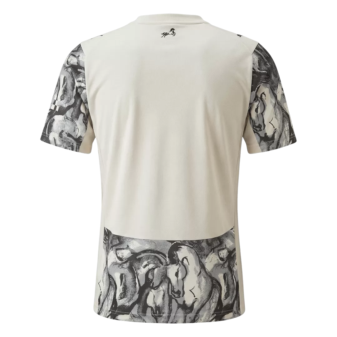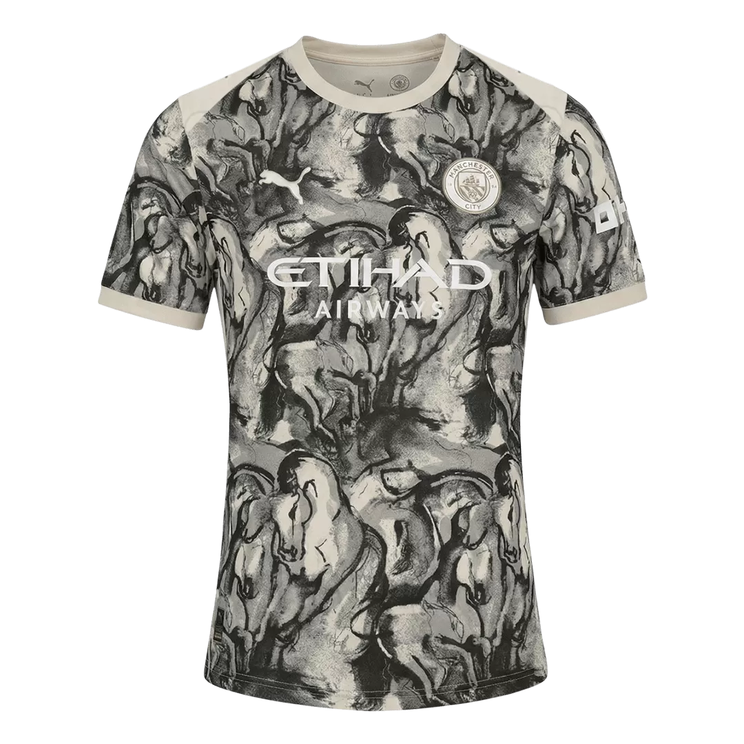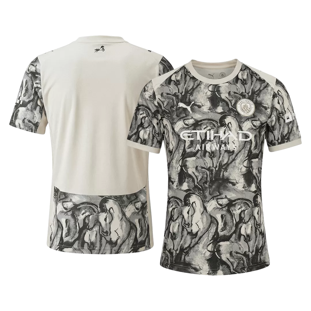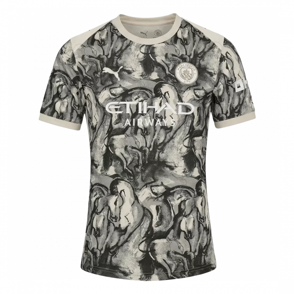Celebrate the spirit of power and grace with the Manchester City Jersey 25/26 Year of the Horse. This striking design features a dynamic monochrome palette with artistic horse motifs, symbolizing strength and forward momentum — qualities deeply rooted in Manchester City’s relentless pursuit of excellence. Crafted with breathable, moisture-wicking fabric and a lightweight fit, this jersey ensures peak performance on and off the pitch.