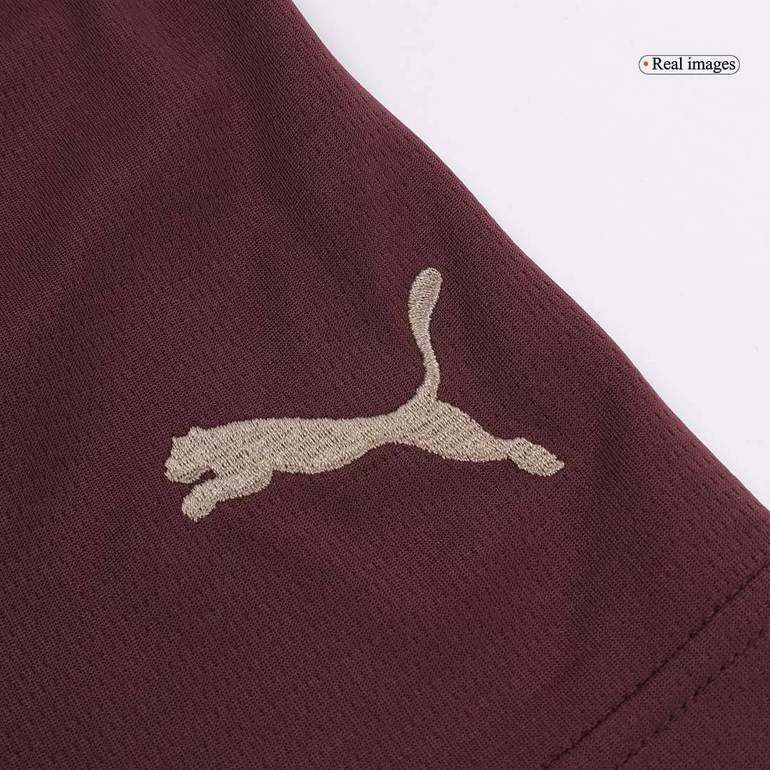 Step onto the pitch with confidence in the Manchester City Third Away Soccer Shorts, featuring a rich maroon hue that symbolizes the club’s bold spirit and historic resilience. These shorts combine sleek simplicity with performance-driven design, celebrating the club’s ambition while ensuring you stay comfortable and focused during every play.