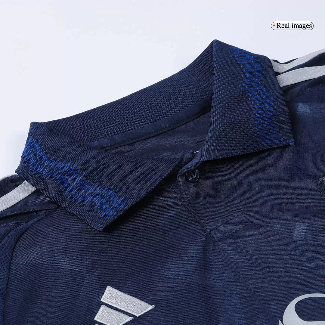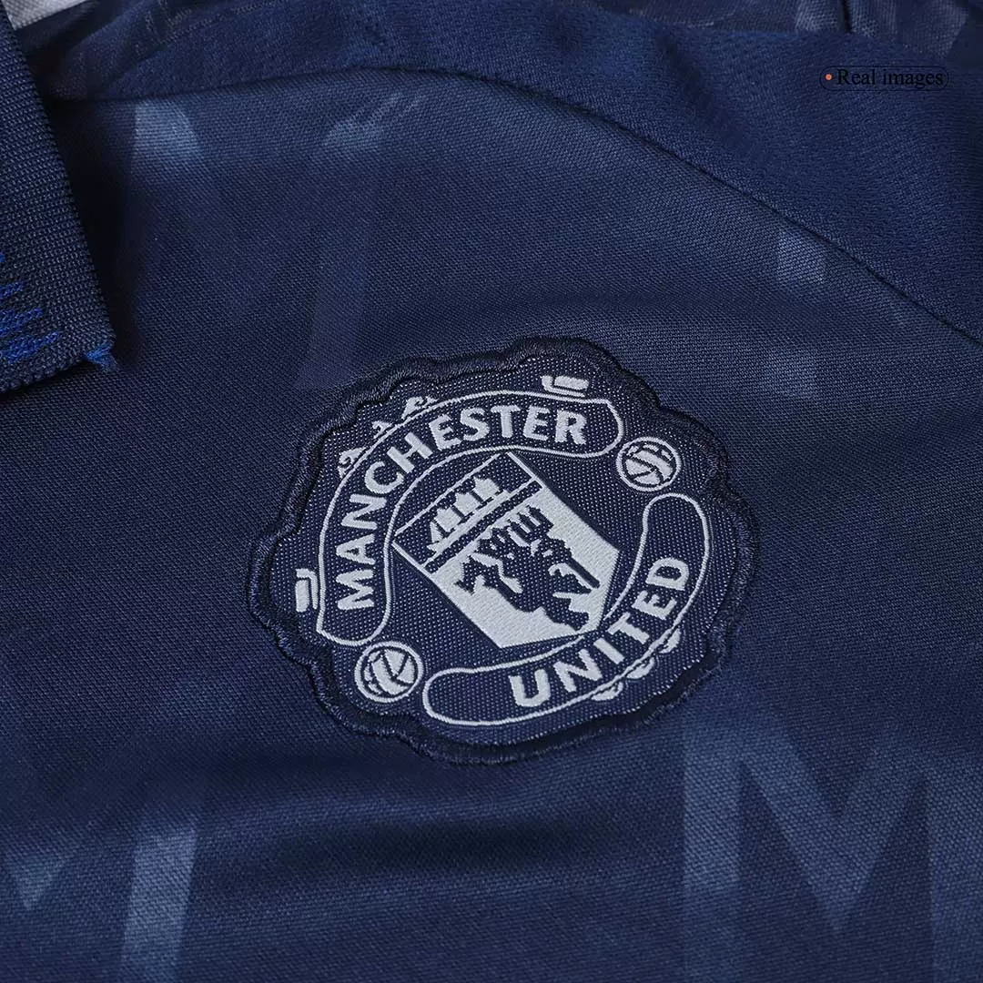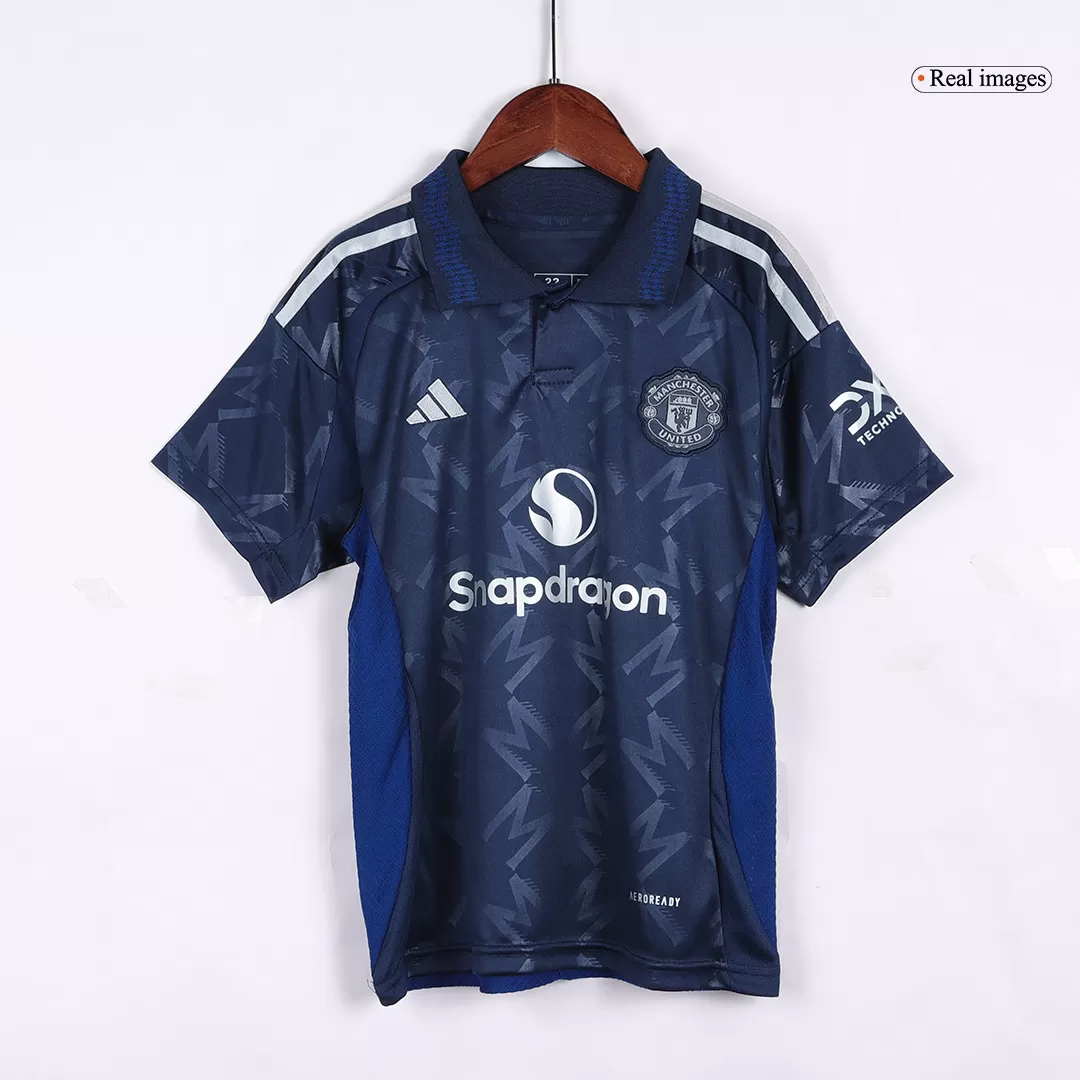 Take your young fan’s game to the next level with the Manchester United Away Kids Soccer Jerseys Kit. Featuring a sleek deep navy palette with subtle geometric patterns, this kit pays homage to the club’s rich history of resilience and passion on the pitch. The classic collar and iconic club crest combine tradition with a modern flair, making every young Red Devil stand out.