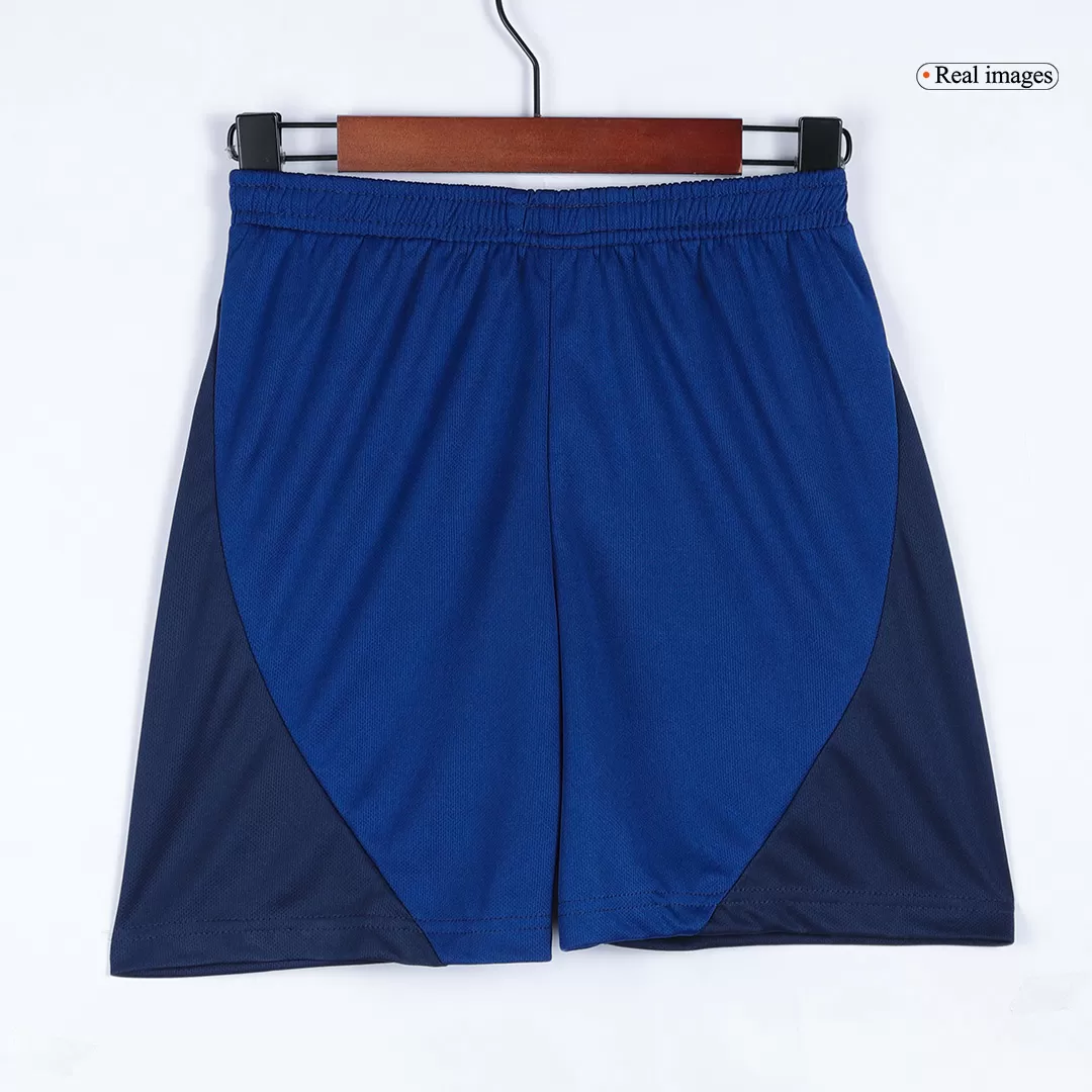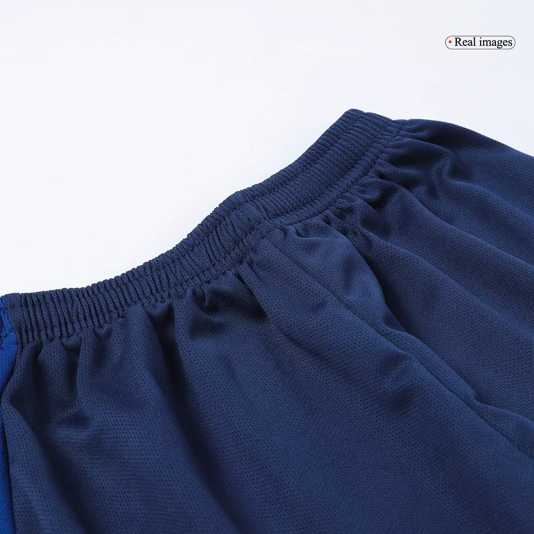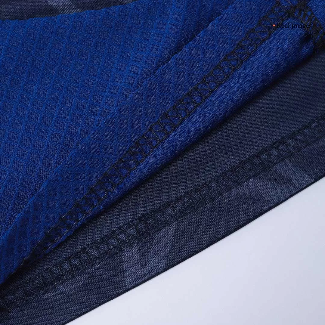 Take your young fan’s game to the next level with the Manchester United Away Kids Soccer Jerseys Kit. Featuring a sleek deep navy palette with subtle geometric patterns, this kit pays homage to the club’s rich history of resilience and passion on the pitch. The classic collar and iconic club crest combine tradition with a modern flair, making every young Red Devil stand out.
