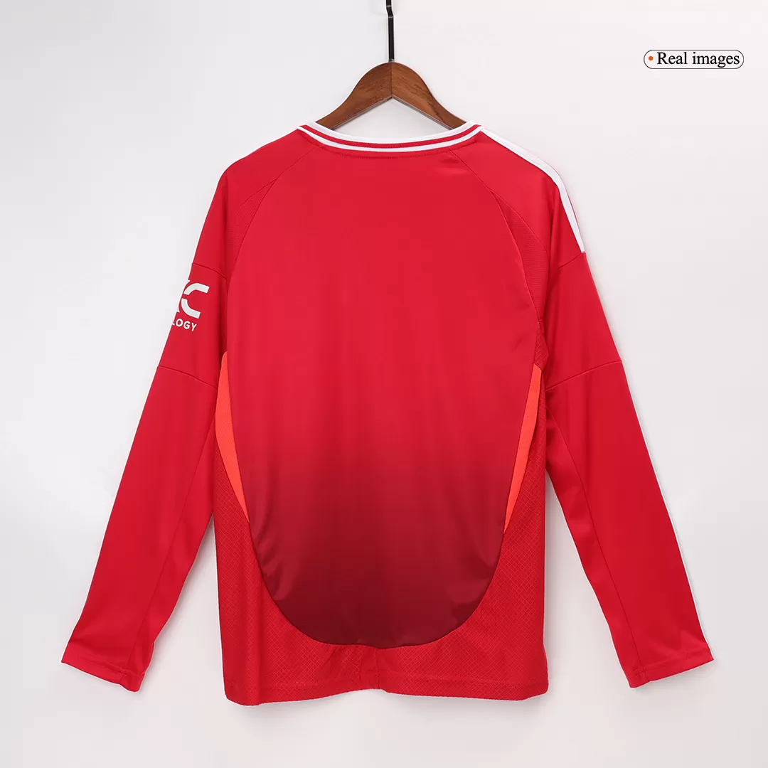 Step onto the pitch with the Manchester United Home Long Sleeve Jersey, a bold tribute to the club’s legendary red that symbolizes passion and resilience. Featuring classic white stripes down the sleeves and a sleek crew neck, this jersey honors the spirit of the Red Devils while offering a contemporary, athletic fit that’s ready for any challenge.