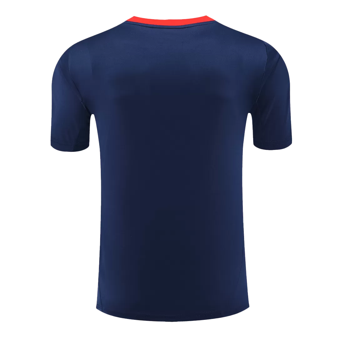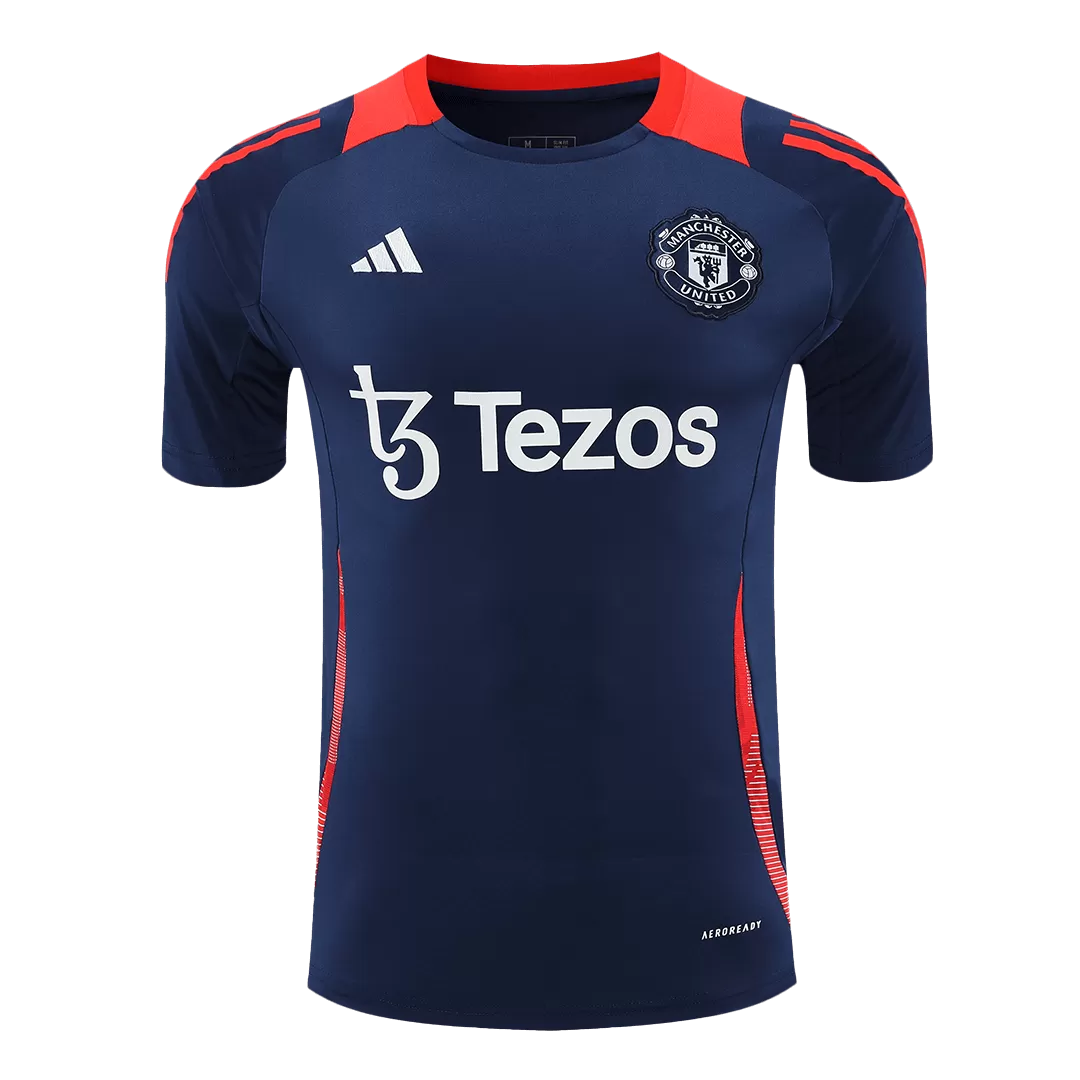 Step into the heart of tradition and performance with the Manchester United Pre-Match Soccer Jersey in striking navy blue. Featuring bold red accents along the shoulders and sides, this jersey captures the club’s relentless spirit and rich history, while embracing a modern, sleek design that’s perfect for game day preparation. The iconic club crest stands proudly on the chest, symbolizing decades of passion and triumph.