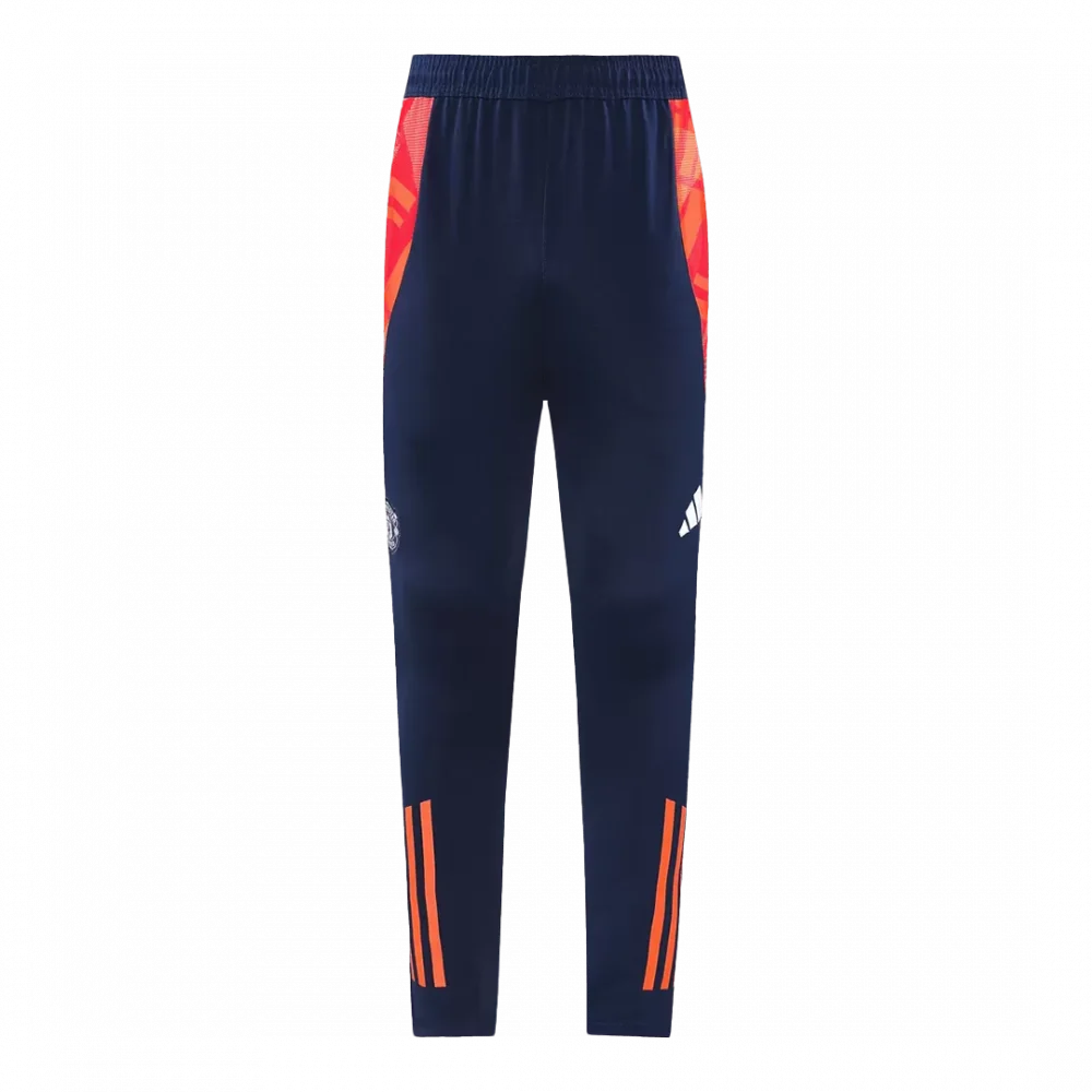Step into the legacy of one of football’s most storied clubs with the Manchester United Soccer Pants in Navy. These pants showcase a sleek navy base complemented by bold red accents on the sides and vibrant stripes near the cuffs, capturing the team’s fighting spirit and rich history of passion and resilience on the pitch. Designed to keep you comfortable and agile, they combine modern performance features with classic style for both training and casual wear.