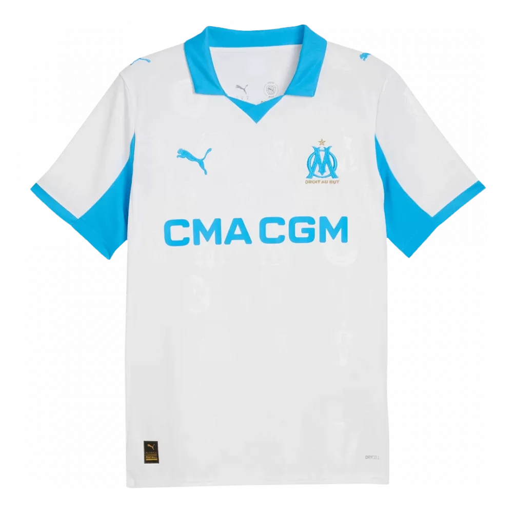 Step onto the pitch with the Marseille Home Soccer Jersey 2025/26, featuring the club’s iconic white base accented by bold sky blue details on the collar and sleeves—colors that proudly represent the pride and passion of this legendary team. Subtle tonal patterns woven into the fabric pay tribute to Olympique de Marseille’s rich history and motto, “Droit au But” (Straight to the Goal), inspiring every player to push forward with relentless determination.