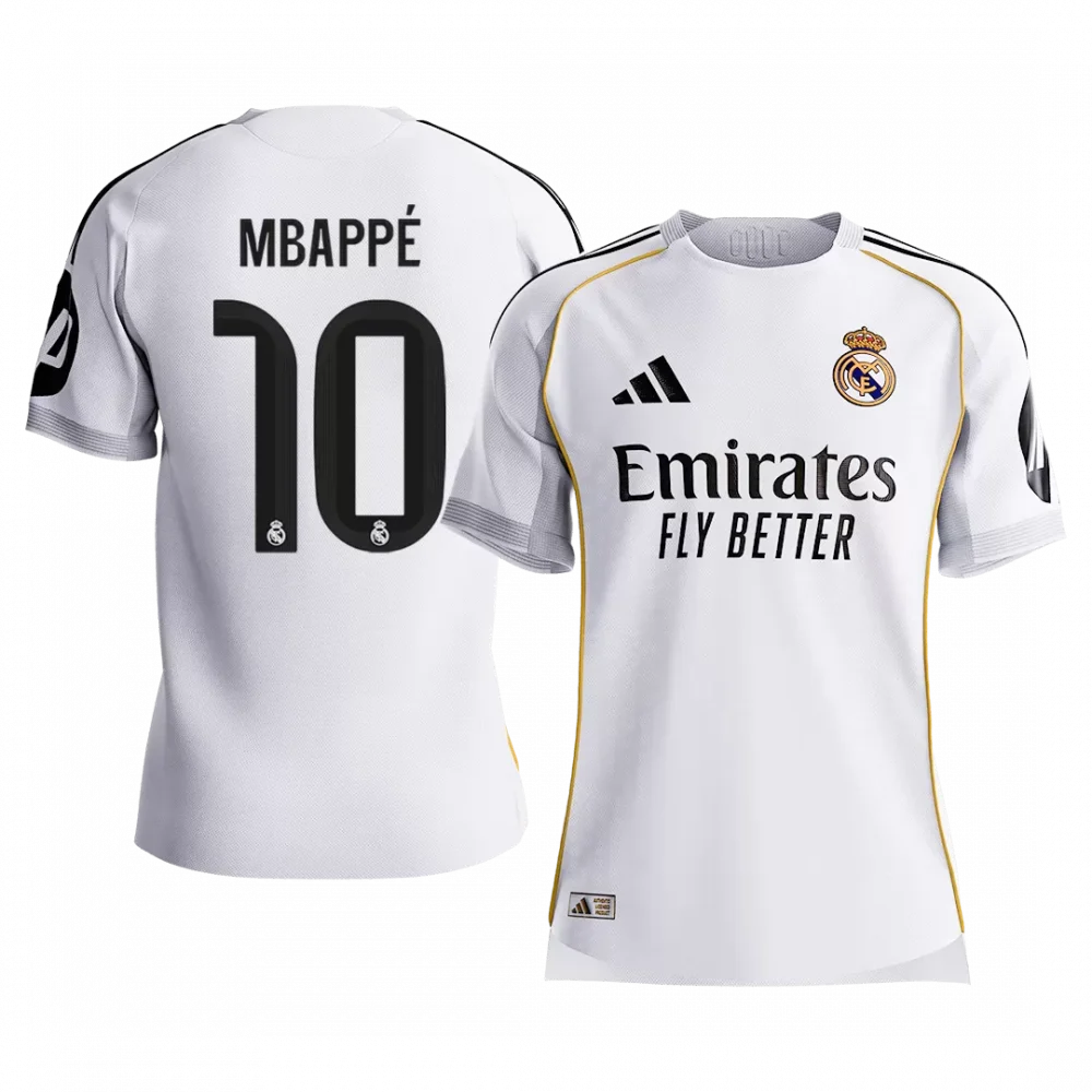 Step onto the pitch with the MBAPPÉ #10 Real Madrid Home Authentic Soccer Jersey 2025/26, an embodiment of the club’s legendary tradition and modern excellence. Featuring the classic all-white design with subtle golden accents tracing the shoulders and sides, this jersey honors Real Madrid’s iconic style and the regal spirit that drives one of football’s most storied teams. Lightweight and breathable, it keeps you cool under pressure while paying tribute to the stars who wear it.