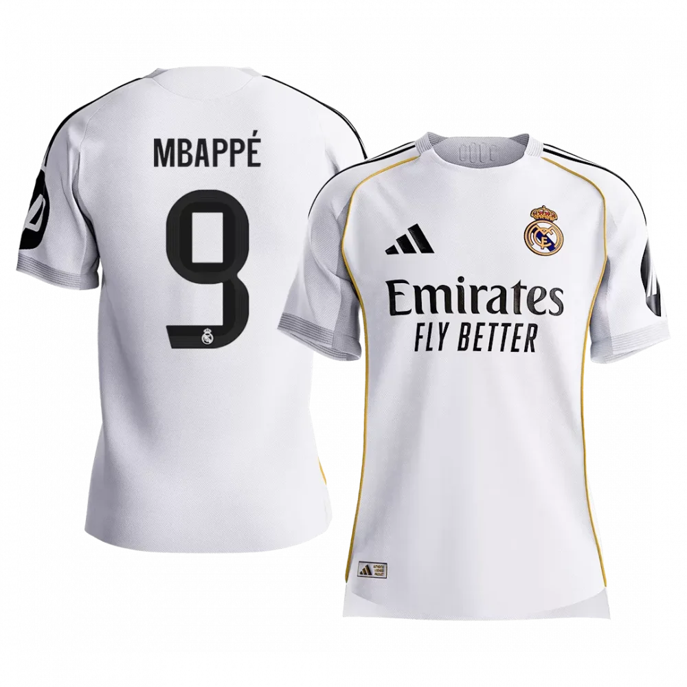 Step into the legacy of champions with the MBAPPÉ #9 Real Madrid Home Authentic Soccer Jersey 2025/26. This classic white design, accented by subtle gold piping and sharp black details, pays homage to Real Madrid’s rich history of elegance and excellence on the pitch. Crafted for peak performance, the jersey blends lightweight, breathable fabric with advanced moisture-wicking features to keep you cool and comfortable from kickoff to the final whistle.