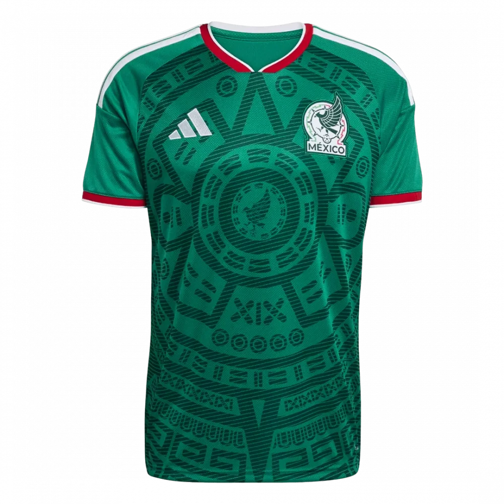 Step into the heart of Mexican pride with the Mexico Home Soccer Jersey for World Cup 2026. Featuring a vibrant green base adorned with intricate Aztec calendar-inspired patterns, this jersey pays homage to Mexico’s rich cultural heritage and fearless spirit on the pitch. The classic red and white accents on the collar and sleeves echo the nation’s flag, making every match a statement of passion and unity.