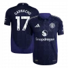 Step onto the pitch with the MOUNT #7 Manchester United Away Authentic Soccer Jersey, featuring a striking deep navy palette accented with subtle geometric patterns and clean silver detailing. This design captures the spirit of Manchester United’s relentless ambition and rich history, making it a perfect choice for fans who embrace the team’s fighting spirit away from Old Trafford. Crafted from lightweight, breathable fabric with advanced moisture-wicking properties, this jersey keeps you cool and comfortable through every match.