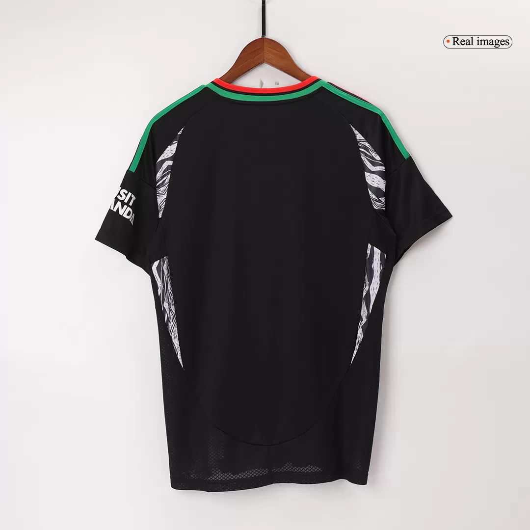 Step into the spirit of the Gunners with the ØDEGAARD #8 Arsenal Away Soccer Jersey, a striking tribute to Arsenal’s rich heritage and relentless drive. Featuring a sleek black base accented by bold red and green trims, this jersey captures the club’s iconic cannon emblem in vibrant red and showcases dynamic, patterned sleeve details for a modern edge. Designed to keep you cool and comfortable on and off the pitch, it blends advanced moisture-wicking fabric with a lightweight, breathable construction to support peak performance.