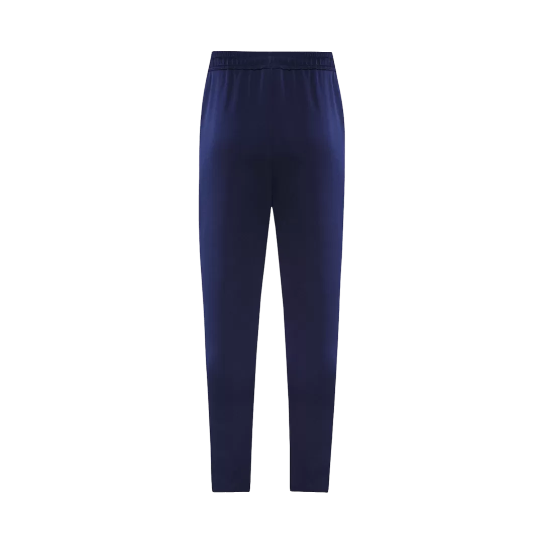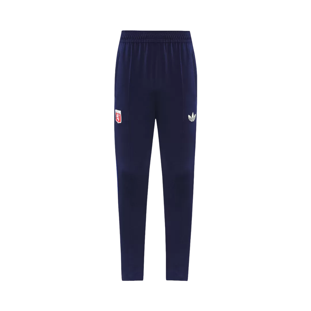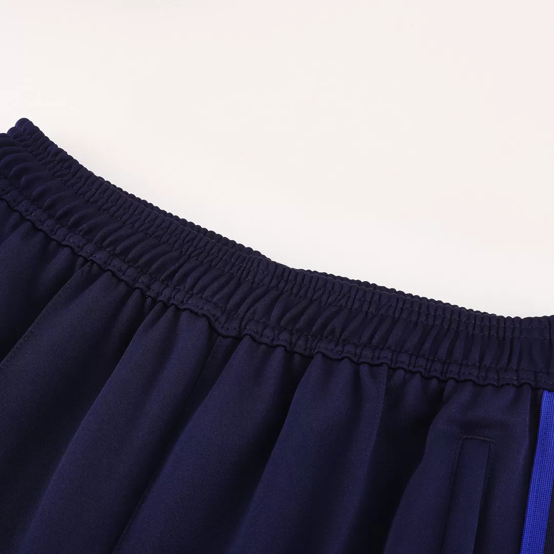Embody the spirit of Olympique Lyonnais with this sleek 2025/26 blue tracksuit jacket and pants set. Showcasing the club’s historic red and white lion crest prominently on the chest and thigh, the deep blue fabric is accented with subtle red and black stripes on the cuffs and collar, evoking the team’s proud heritage. Crafted from lightweight, breathable fabric with advanced moisture-wicking properties, this tracksuit guarantees comfort and performance whether you’re warming up or representing your team day-to-day.