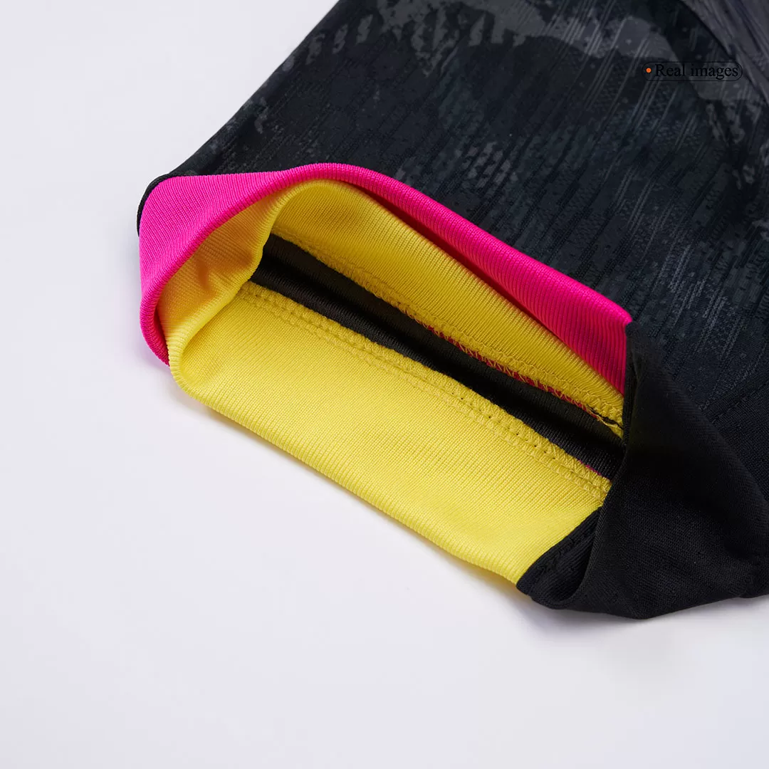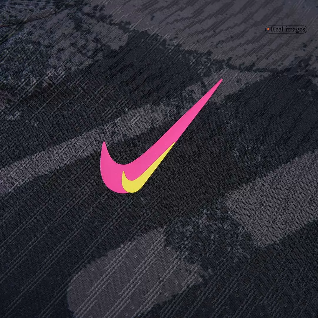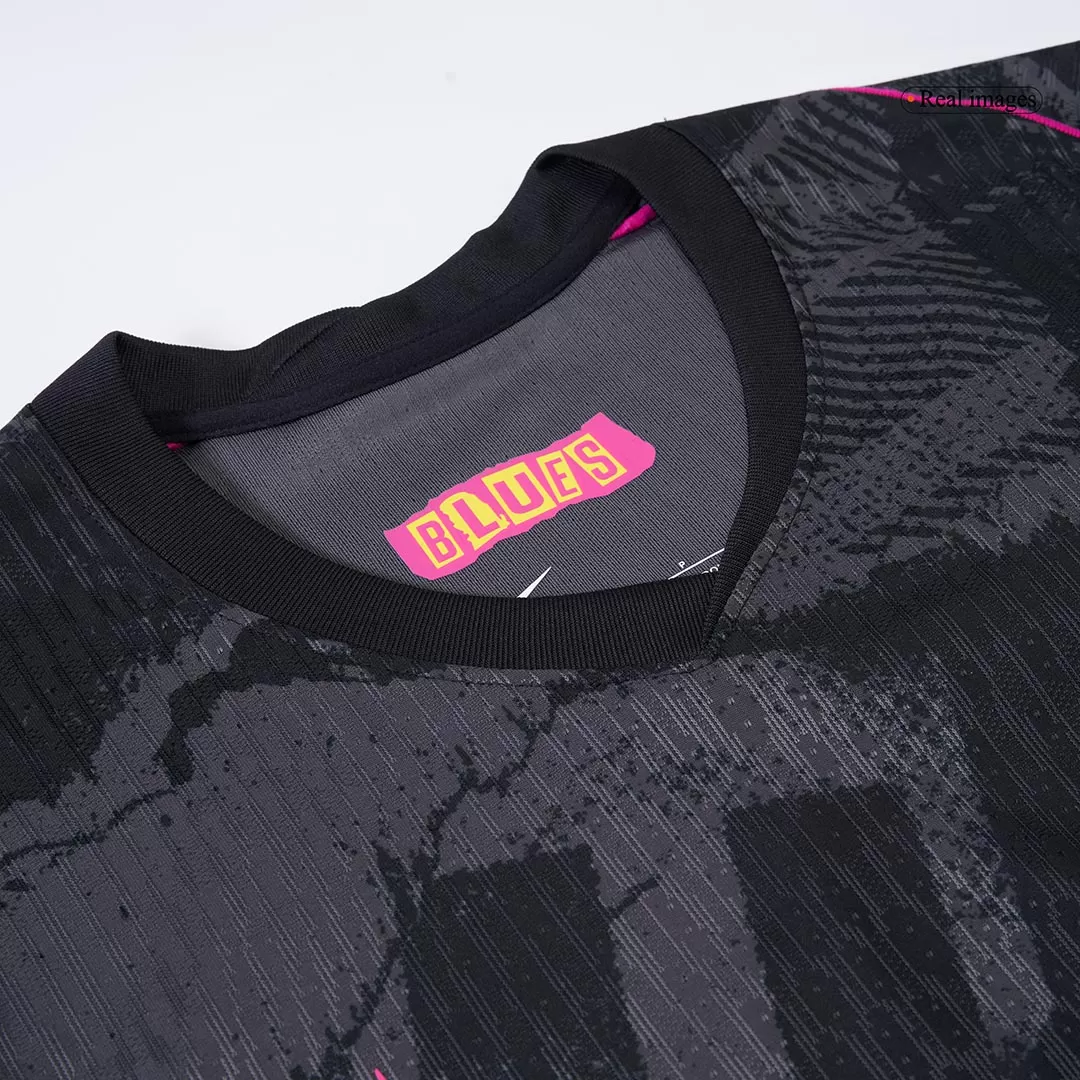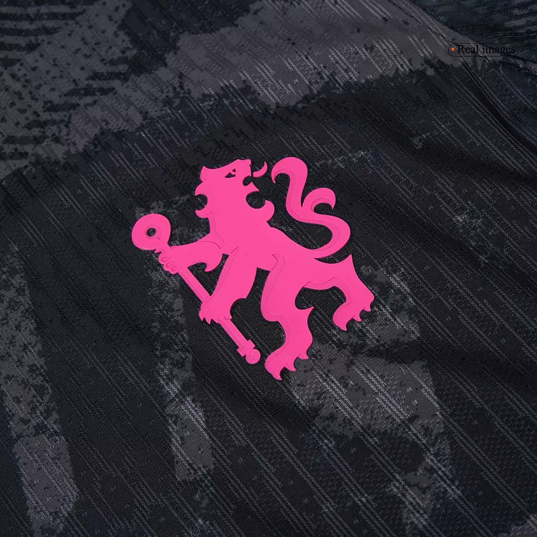 Step onto the pitch with the PALMER #20 Chelsea Third Away Authentic Soccer Jersey, featuring a striking black base enriched with dynamic dark grey patterns that echo the spirit of Chelsea’s relentless drive. Accented with bold pink and yellow trims, this design pays homage to the club’s fearless and vibrant approach to the game. Crafted for optimal performance, this jersey offers breathable, lightweight fabric combined with advanced moisture-wicking technology to keep you cool and comfortable during every play.