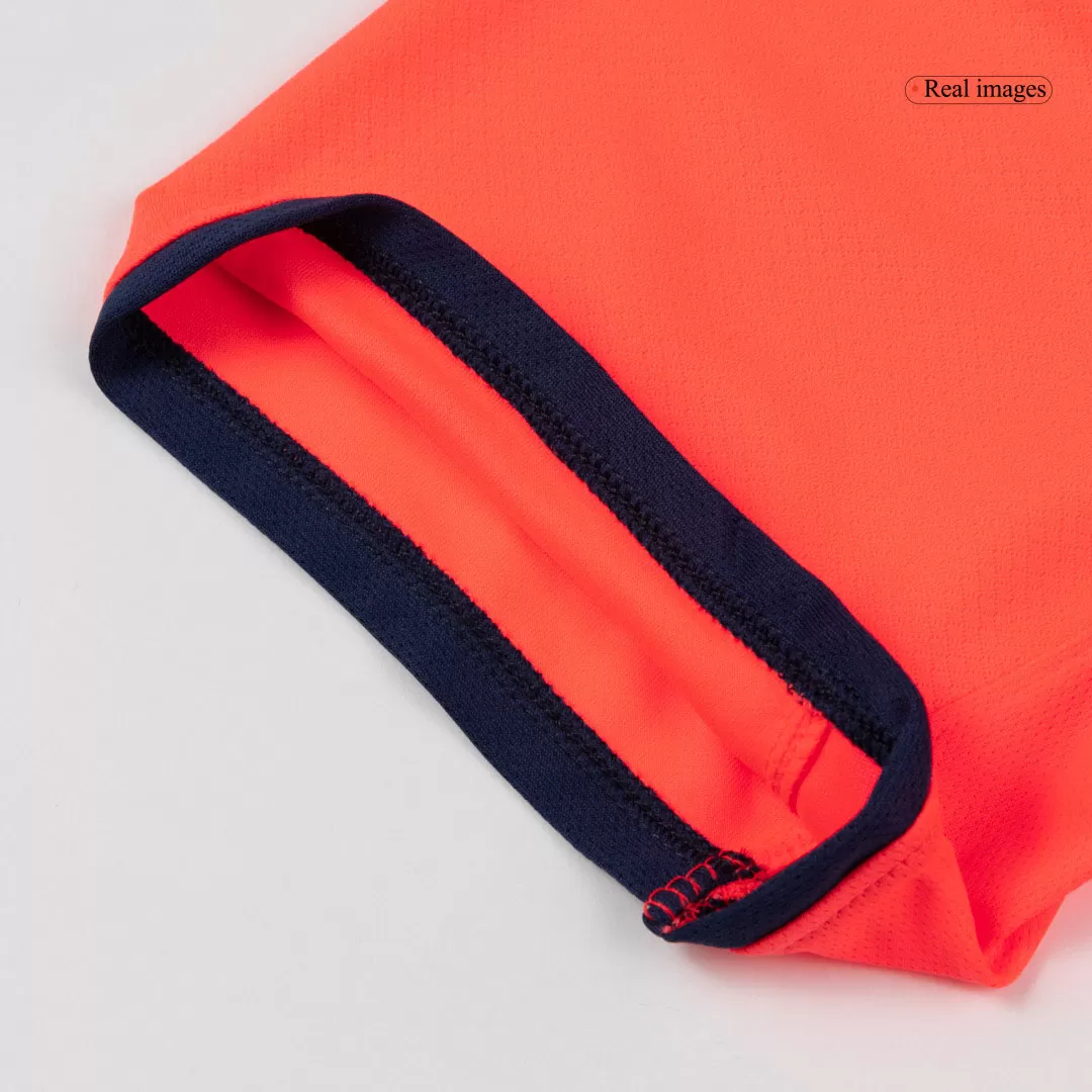 Step into the future with the PEDRI #8 Barcelona Third Away Soccer Jersey 2025/26, a bold statement in vibrant coral and deep navy. This striking kit honors Barcelona’s fearless spirit and innovative style, blending sharp contrasts with sleek detailing that turns heads on the pitch. Engineered for the demands of elite performance, it boasts breathable, moisture-wicking fabric and a lightweight fit to keep you at peak comfort and agility.