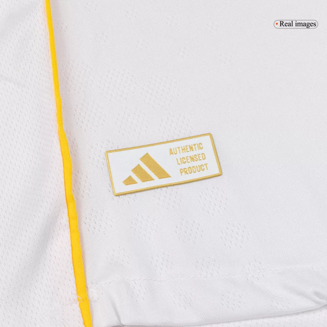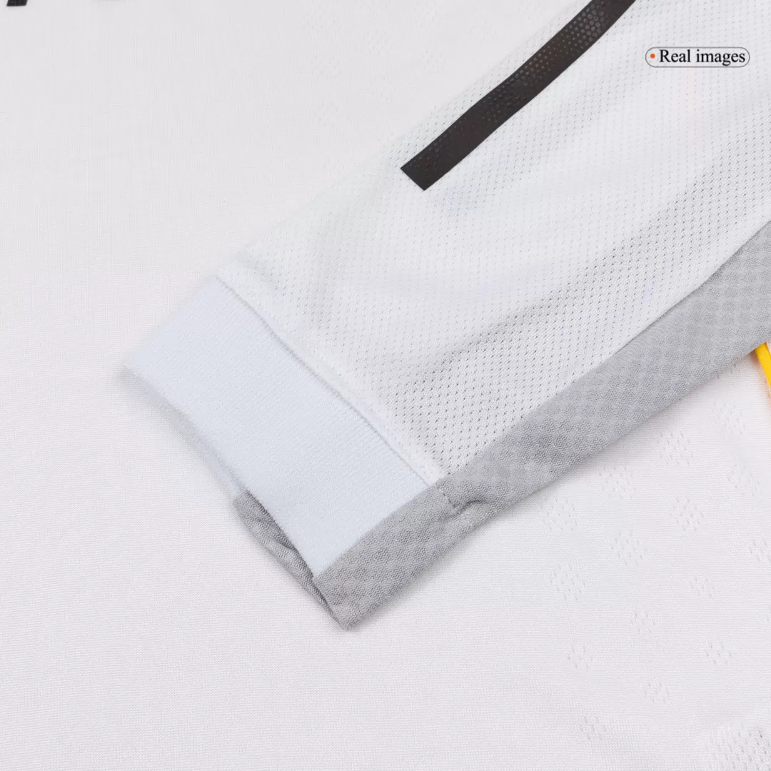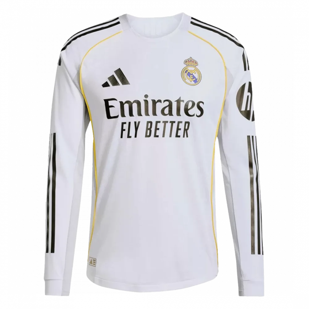 Step into the legacy of excellence with the Player Version Real Madrid Home Long Sleeve Jersey 2025/26. This iconic all-white design is accented by subtle black stripes and fine gold piping, honoring the timeless elegance and royal heritage of Los Blancos. Crafted for peak on-field performance, it offers a sleek, form-fitting style that supports every move with lightweight, breathable, and moisture-wicking fabric.
