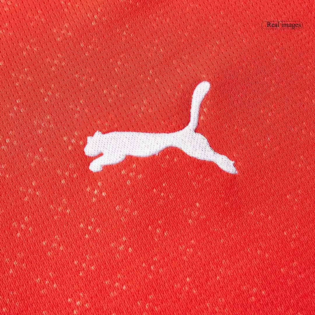 Step into the heart of Portuguese football with the Portugal Home Long Sleeve Jersey 2025. This vibrant red jersey features subtle cross-pattern details that reflect the nation’s rich heritage, while the classic green and white trim on the collar and cuffs pay tribute to Portugal’s iconic colors. Built for peak performance, it combines breathable, lightweight fabric with advanced moisture-wicking technology to keep you cool and comfortable from the first whistle to the last.